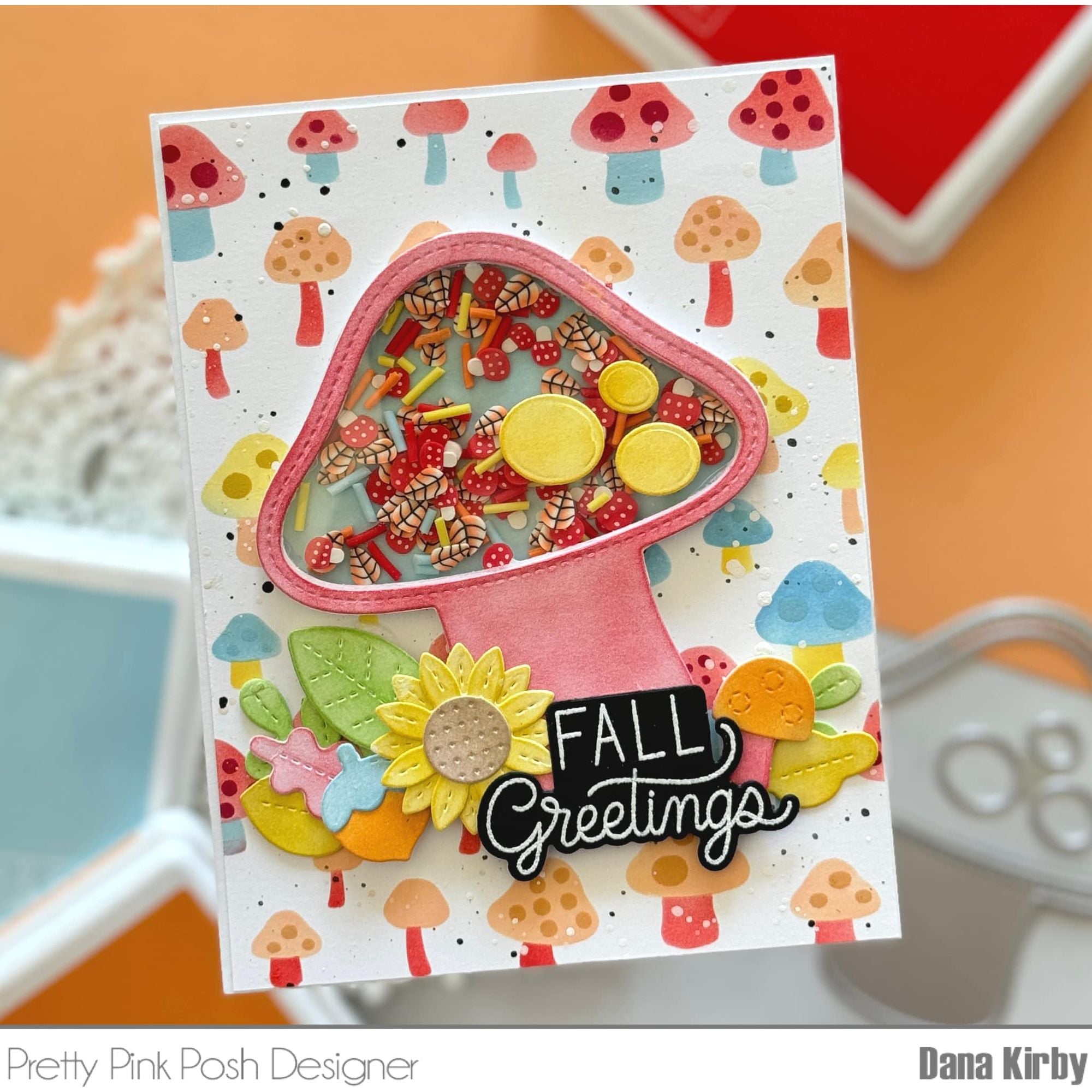 The Pretty Pink Posh Mushrooms Layered Stencils are perfect for adding a fun and detailed mushroom-themed background to your fall projects. This set includes 3 layering stencils that can create a beautiful, multi-dimensional pattern of mushrooms in various sizes. Simply place the stencil over your project and secure it with washi tape or repositionable adhesive. You can use inks, embossing paste, sprays, or other mediums to bring your designs to life. Each stencil measures 6 x 6 inches and are made in the USA.