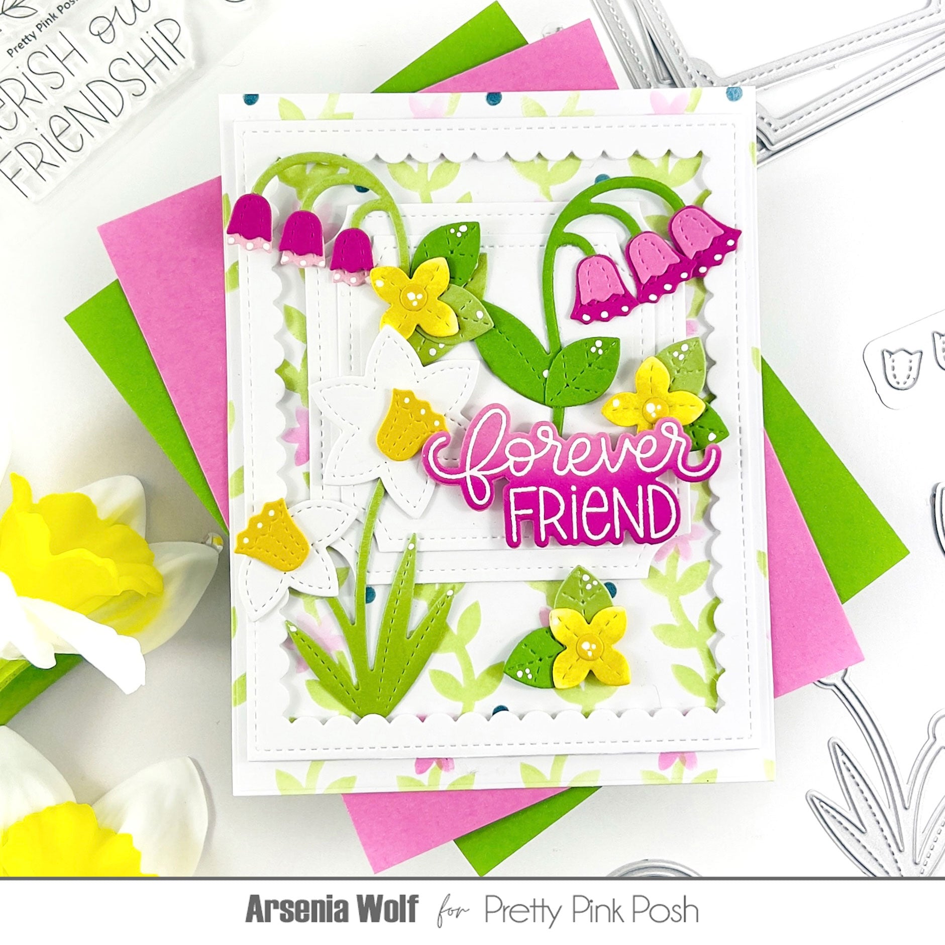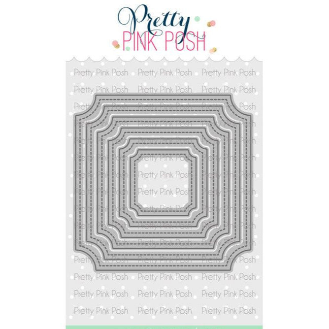 Pretty Pink Posh Notched Squares Dies is a set of 6 nested square dies, each featuring stitched detailing around the edges. Use them individually or layer them for added dimension in scrapbooking, cardmaking, and other paper crafts. Sizes range from approximately 1.5 inches to 4 inches: