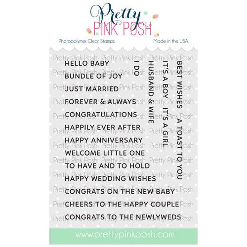 Pretty Pink Posh Sentiments Strips Occasions Clear Stamp is a 3 x 4 stamp set that helps you create whimsical and fun designs. This set includes 19 designs and is made in the USA.