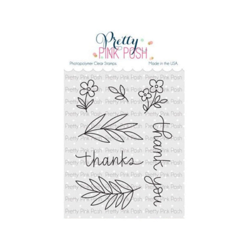 Pretty Pink Posh Simple Thanks Clear Stamps is a 3x4 inch clear stamp set featuring simple floral images and two elegant script “thank you” sentiments. With 8 designs in total, this set is perfect for creating heartfelt, whimsical cards and paper crafts. Coordinating Simple Thanks Dies are sold separately. Made in the USA.