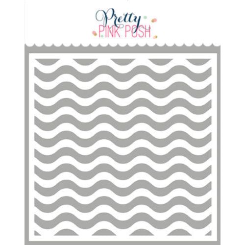 The Pretty Pink Posh Wavy Stripes Stencil adds a dynamic wave pattern to backgrounds, making it perfect for enhancing craft projects. This 6 x 6 inch stencil is versatile and can be used with inks, embossing paste, sprays, or other mediums to create unique textures and designs.
