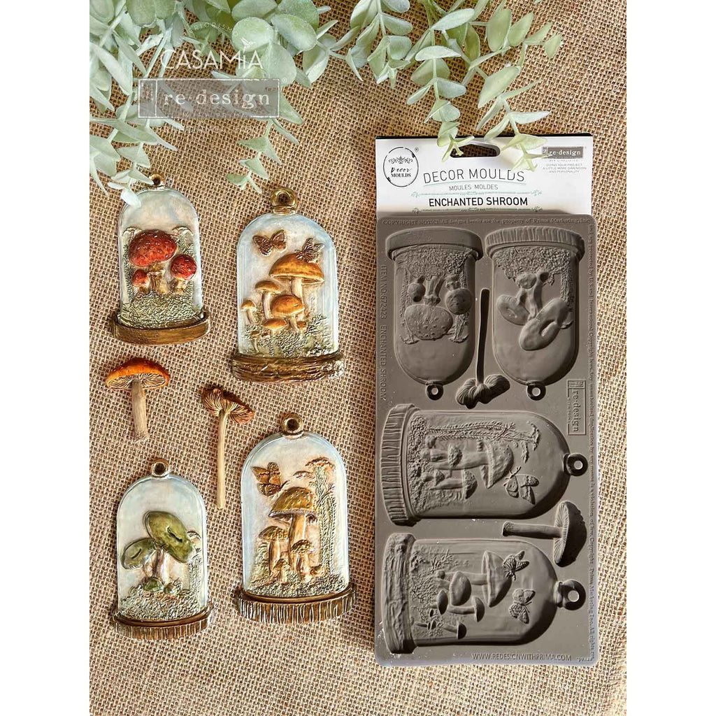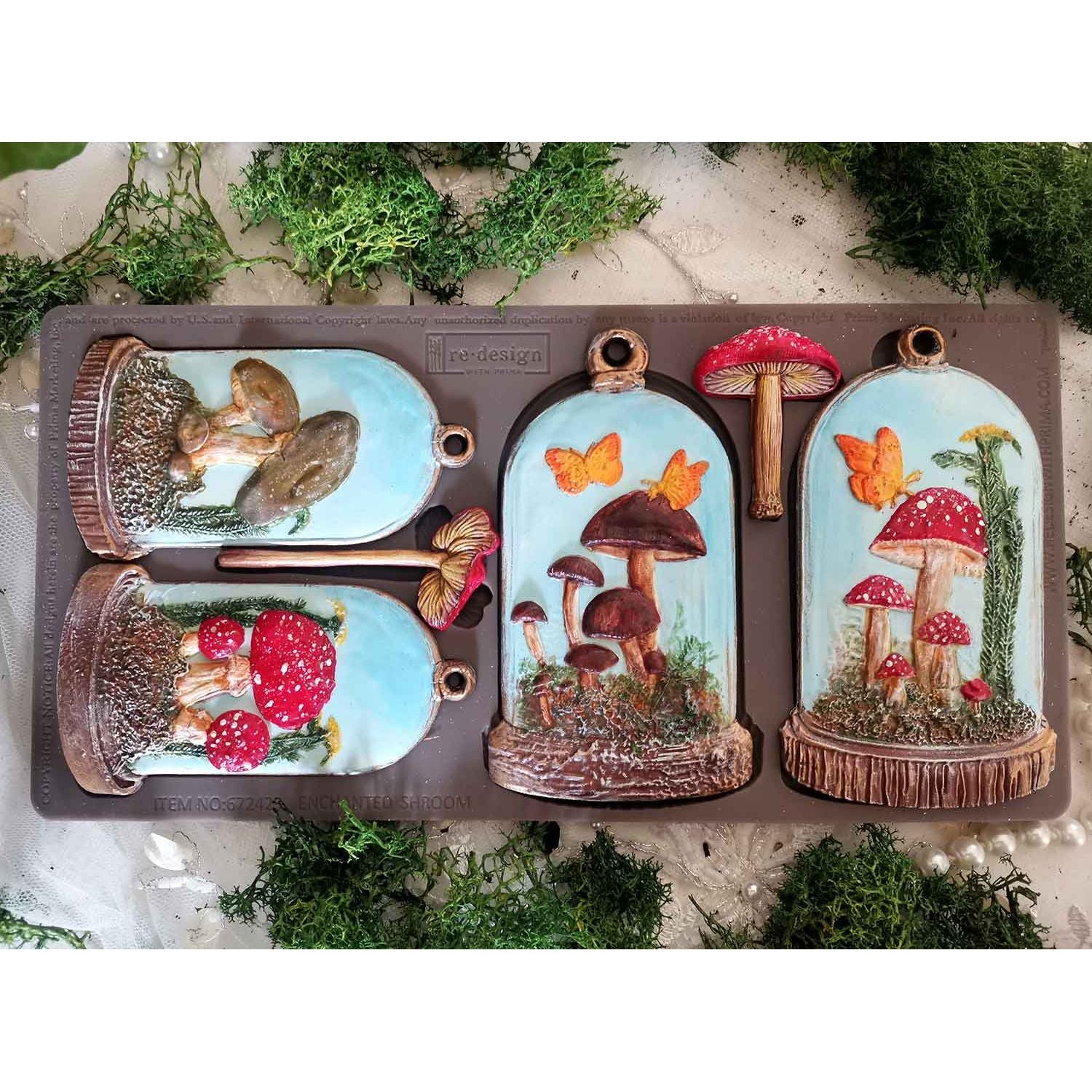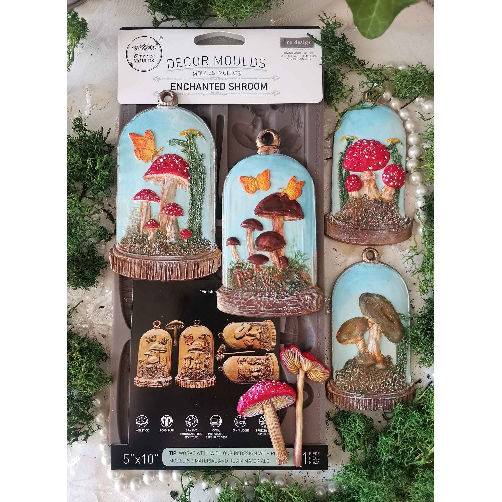 Elevate your projects with a touch of fairytale enchantment using the Enchanted Shroom Décor Mould®. This delightful mould features delicate scenes of mushrooms nestled in exquisite glass domes, complete with intricate details that will transport you to a magical forest. Perfect for those who appreciate adding a touch of mystical charm to their holiday decor, these designs are not only enchanting but also incredibly detailed. An ideal choice for decorating frames, adding ornate elements to furniture, and creating sophisticated holiday ornaments and decor with a timeless appeal. The impressive versatility of these moulds sets them apart, as they are not only perfect for DIY and crafting projects, but also food-safe and oven-safe, offering endless culinary possibilities. Whether working with resin, hot glue, modeling material, fondant, chocolate, or other pourable and moldable mediums, these moulds make it easy to create unique castings and food decorations. Approximate dimensions: 5in x 10in x 8mm.