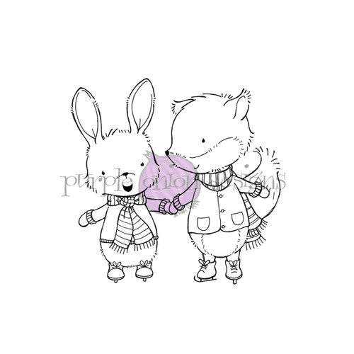 The Purple Onion Designs Cleo And Archie cling stamp is an exceptional 2.375 x 2.375 inch stamp featuring a delightful fox and bunny ice skating. Perfect for all kinds of crafting projects, this versatile stamp allows you to bring some fun and whimsy to your artwork. Purple Onion Designs produces beautiful unmounted red rubber stamps. The stamps will require some type of adhesive or cling to stick to your acrylic block.