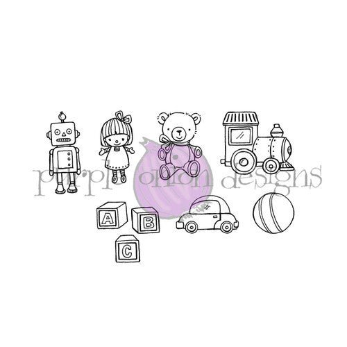 Purple Onion Designs Holiday Toy Set Unmounted Cling Stamp pod1294*