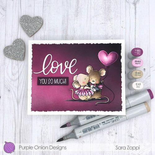 The dimensions of this cling stamp are 2.625 x 3.125 inches. It showcases a mouse tenderly kissing her beloved mouse while holding a heart-shaped balloon and flower. To use this stamp, you will need an adhesive or cling to secure it onto your acrylic block, providing stability and precision during the stamping process. Once adhered, this stamp is ready to be inked and pressed onto your chosen medium, leaving behind a beautifully intricate design.