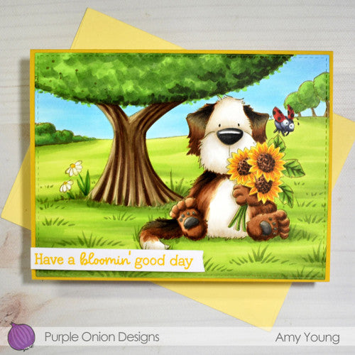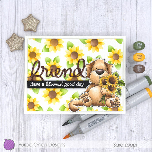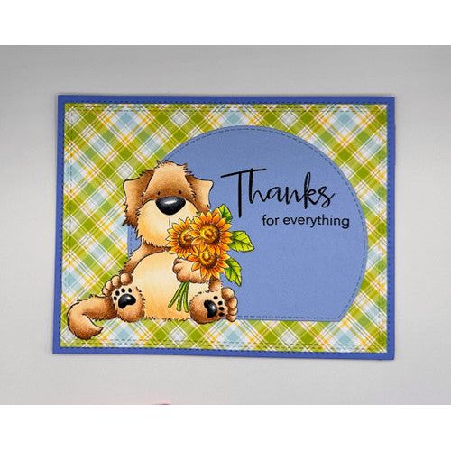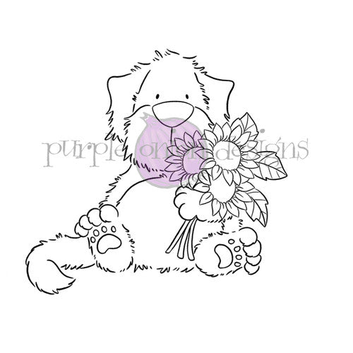 This unmounted cling stamp, measuring 3.125 x 3 inches, showcases a cute floppy dog clutching a lovely sunflower bouquet. Created by Chilliezgraphy by Pei design, this stamp requires an adhesive or cling to securely attach it to your acrylic block for stable and precise stamping. Once attached, ink and press onto your preferred surface for a beautifully detailed design.