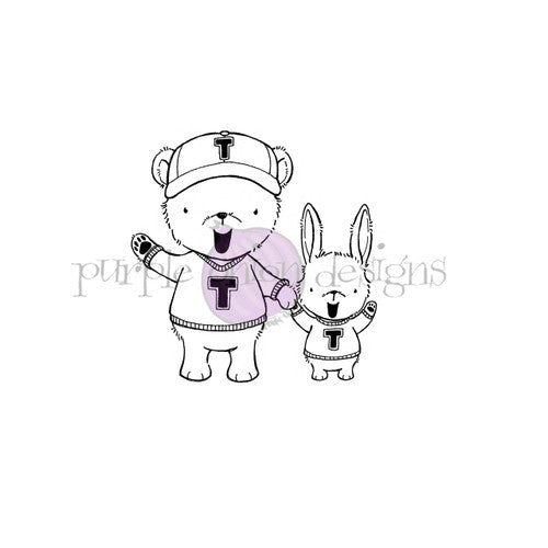Experience the charming world of Warren and Sam with this unmounted cling stamp, measuring 1.875 x 2 inches. Created by renowned artist Stacey Yacula, this stamp depicts a bear and bunny sporting varsity sweaters and holding hands as they cheer. To ensure precision and stability, use an adhesive or cling to secure the stamp onto your acrylic block. With a simple press, you can transfer this intricately designed image onto your chosen medium, adding a touch of beauty to your project.