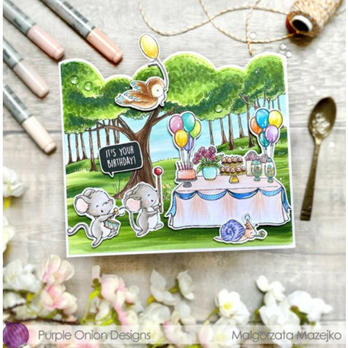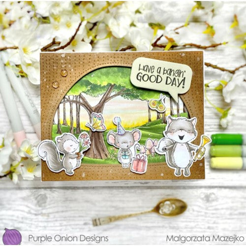 Purple Onion Designs produces beautiful unmounted red rubber stamps. The stamps will require some type of adhesive or cling to stick to your acrylic block. Designed by Stacey Yacula.