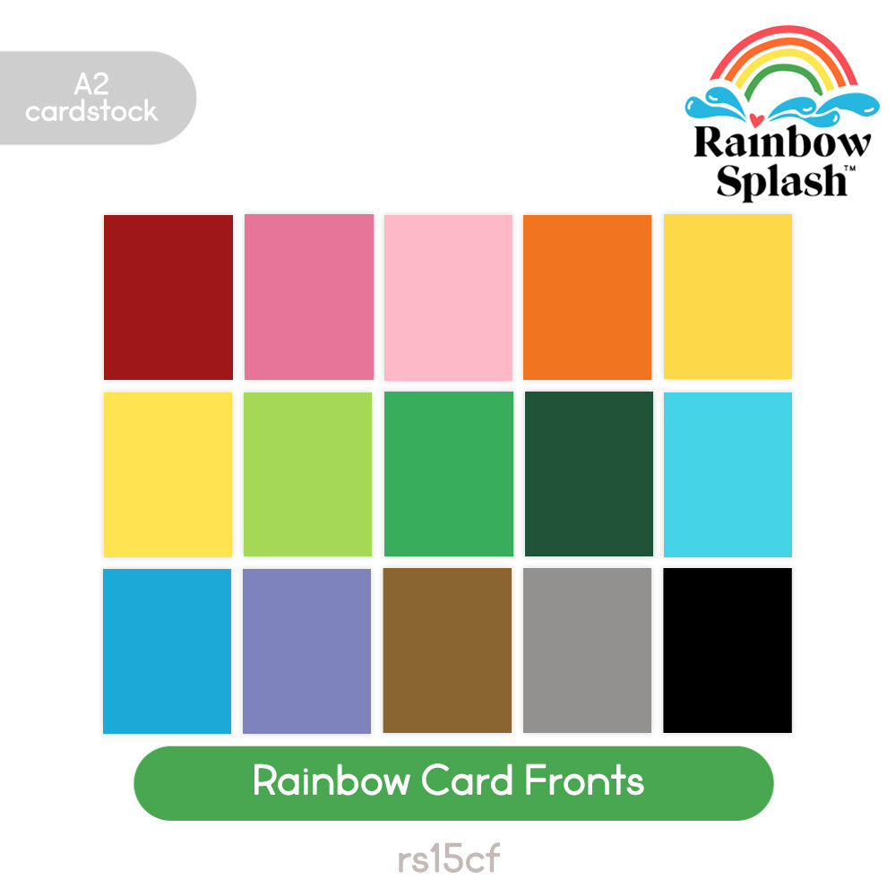 The Rainbow Splash Card Fronts selection features 15 A2-sized card fronts in a vibrant assortment of colors, perfect for adding a splash of brightness to your cardmaking projects. The colors in this pack of 80 lb. card fronts are: