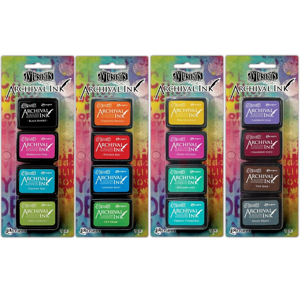 Add a pop of color to your crafts with the Ranger Dylusions Mini Archival Ink Pads Kits! These waterproof and acid-free dye inks come in the classic Dylusions color palette, providing long-lasting results that won't bleed. Perfect for crafting on-the-go and easily reinked with coordinating Dylusions Archival Ink Re-inkers. Each mini pad measures 1.25 x 1.75 inches (3.12 cm x 4.45 cm). This bundle includes the following:
