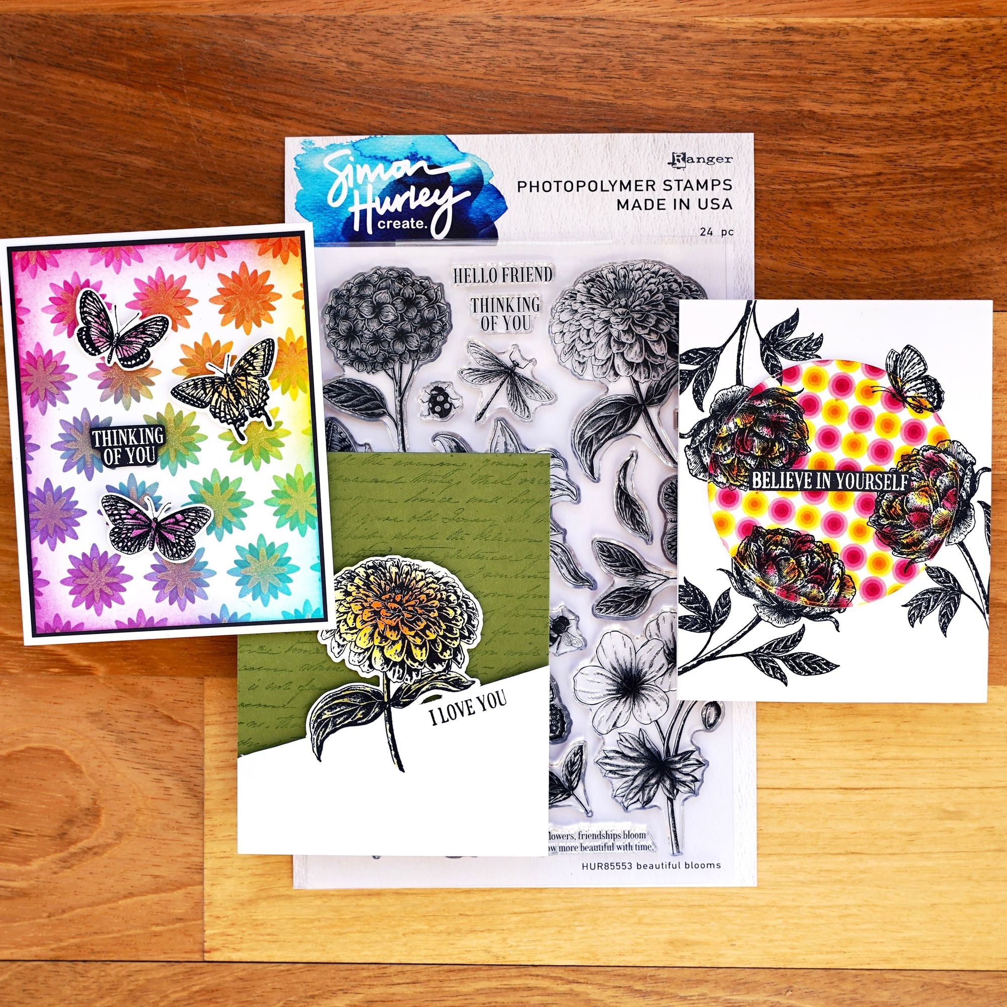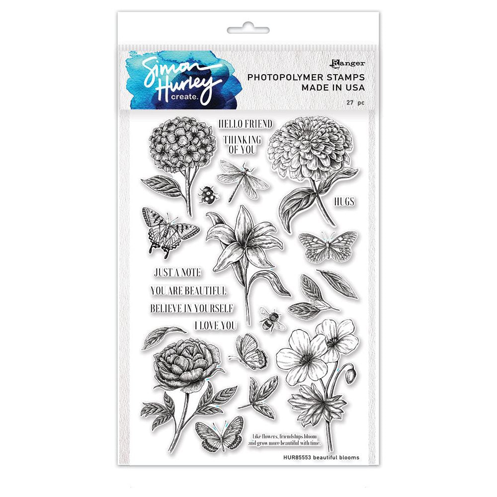 Create beautiful handmade cards with the Simon Hurley Beautiful Blooms Clear Stamp Set. Made in the USA, these high-quality photopolymer stamps guarantee perfect images with each use. The set includes 27 pieces of imagery such as flowers, leaves, dragonflies, butterflies, bees, and beetles, all within a stamp set measuring 6 x 9 inches (15.24cm x 22.86cm). A coordinating die set is also available from Spellbinders (s7-244, sold separately)!