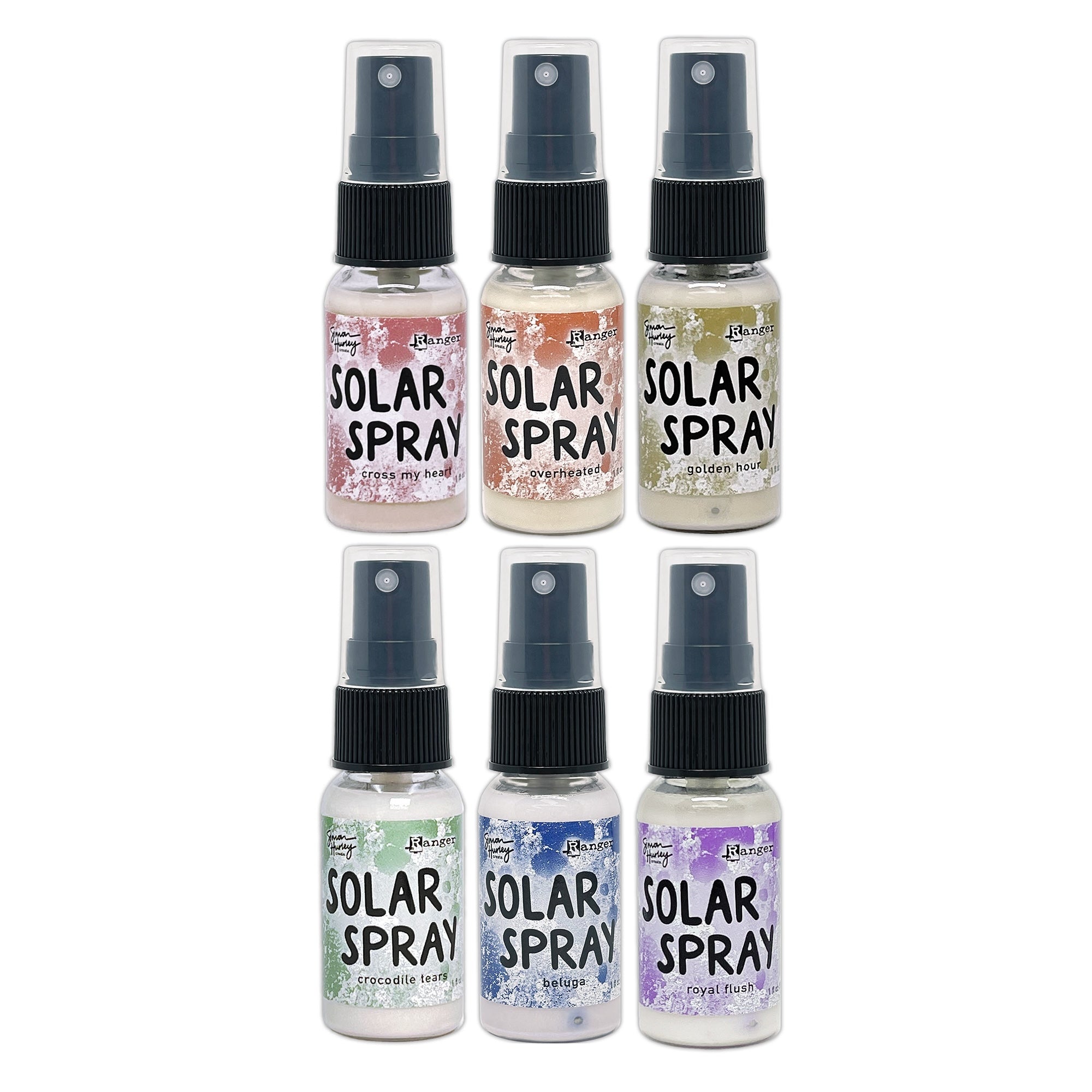 Indulge in the luxurious world of creativity with Simon Hurley Solar Spray Bundle. This exquisite set features 6 Solar Sprays that add a pearlescent marbled shine to any crafting project. Elevate your artistry with these versatile sprays that offer a subtle shimmer on white cardstock and an intense colored shine on black cardstock. Use them to create dynamic backgrounds, eye-catching highlights, and stunning mixed-media effects. Plus, each 1 fl. oz. spray adds a radiant, color-shifting shine to turn ordinary projects into extraordinary works of art. Order now and explore a world of sophistication and brilliance!