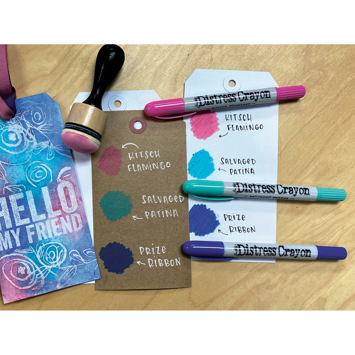 Enhance your mixed-media projects with Ranger Tim Holtz's Distress Crayons in 3 beautiful colors. The water-reactive pigments offer vibrant coloring and smudge effects on porous surfaces. Create stunning backgrounds and layer with other Distress products for endless creative possibilities. Expertly formulated for the best results.