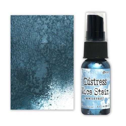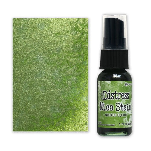 Tim Holtz Distress Mica Stains add colorful, pearlescent shimmer to paper crafts or mixed media projects.