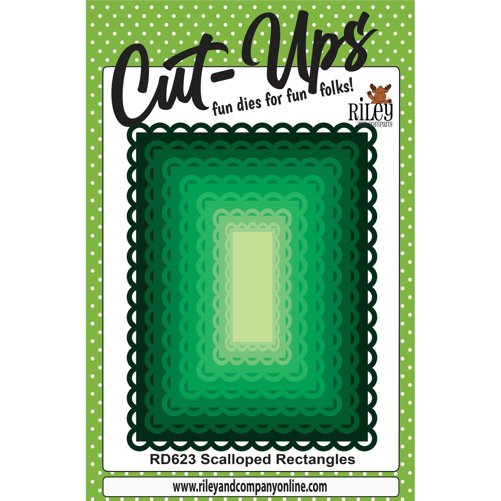 Riley and Company Cut Ups Scalloped Rectangles Dies are made from high-quality metal and can be used with most die-cutting machines. The largest die measures 4.25 x 5.5 inches, and the set includes 8 dies, perfect for adding a decorative scalloped edge to your projects.
