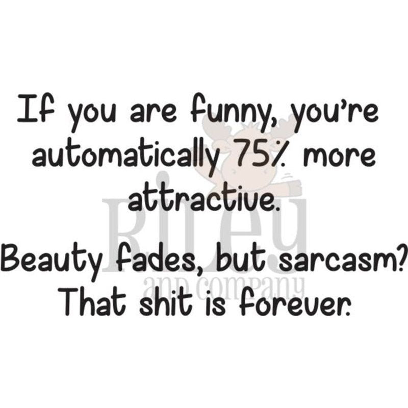 • If you are funny, you're automatically 75 percent more attractive. Beauty fades, but sarcasm? That shit is forever.
