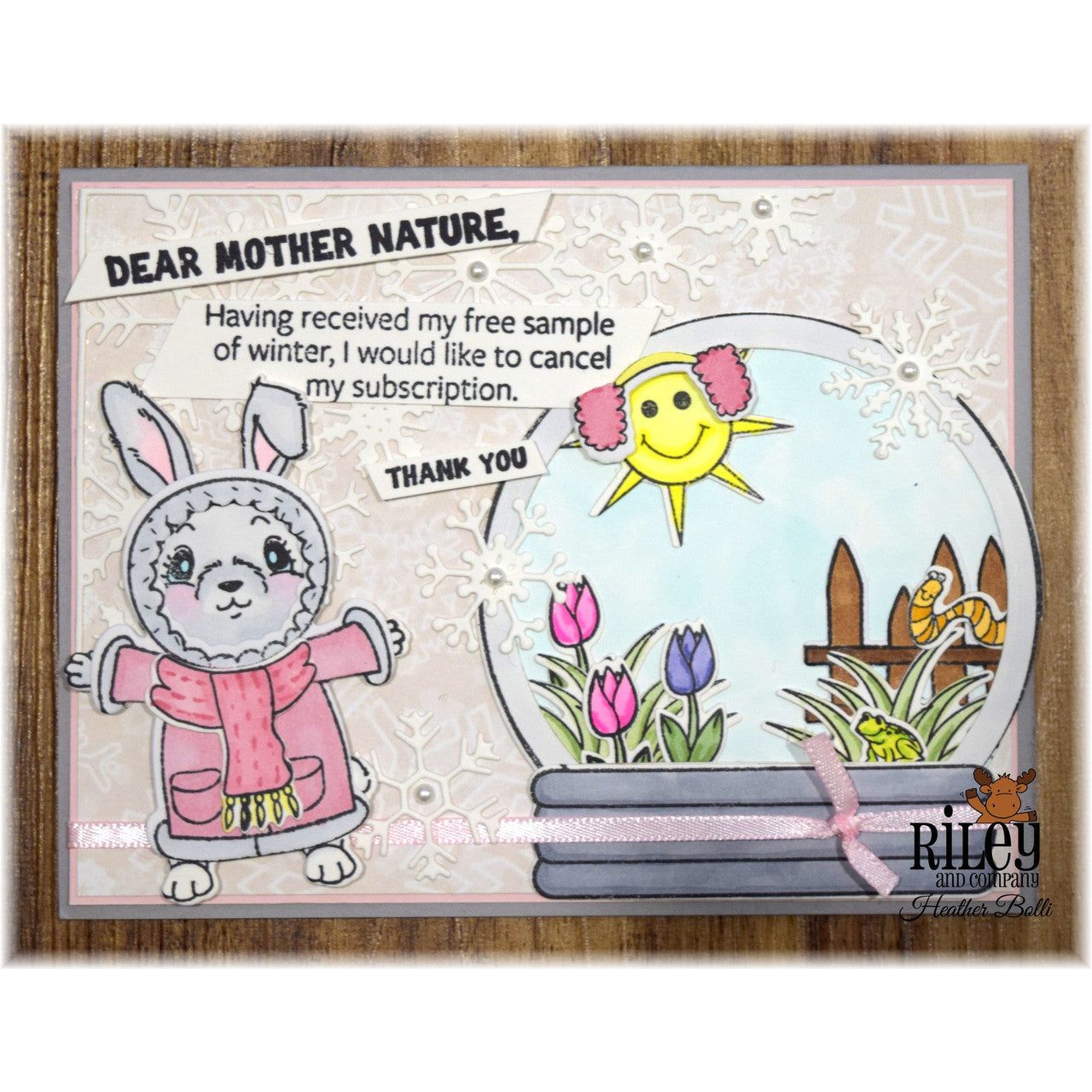The Riley and Company Funny Bones Dear Mother Nature Clear Stamp is part of the Funny Bones collection, renowned for its snarky humor. These stamps are ideal for adding humor and fun to your cards and projects, especially when addressing Mother Nature.