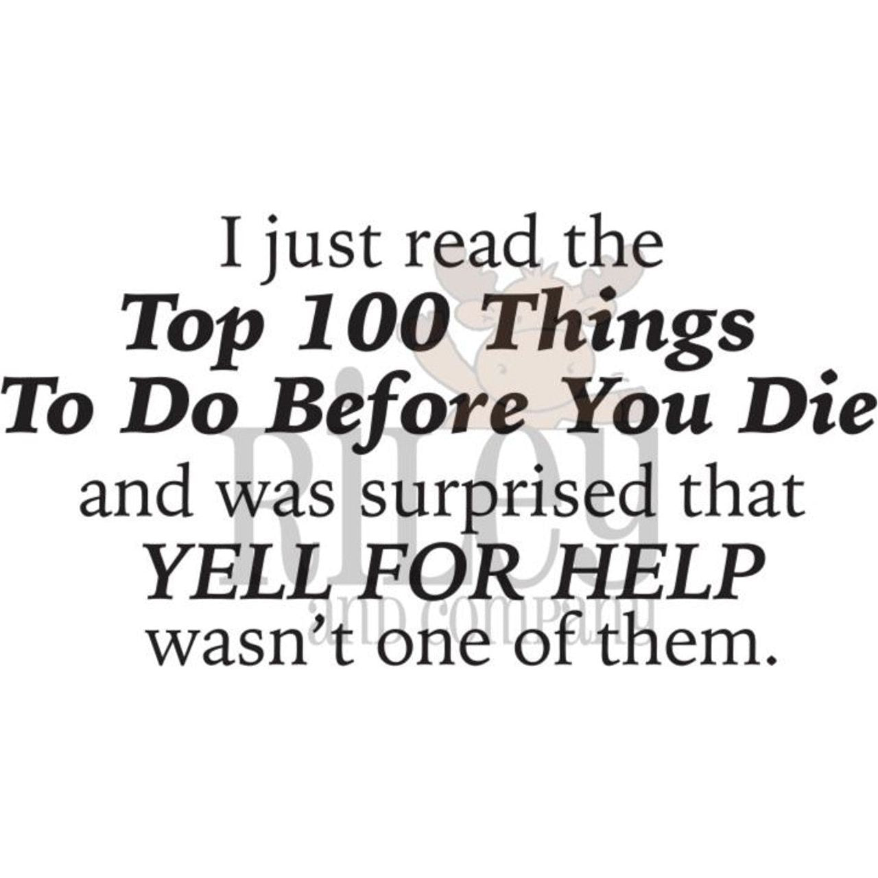 Sentiment Reads: I just read the Top 100 Things To Do Before You Die and I was surprised that yell for help wasn't one of them.