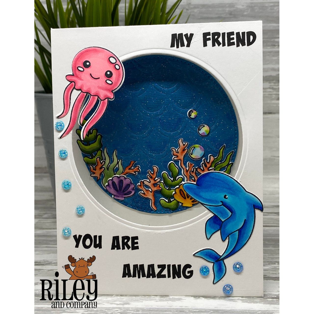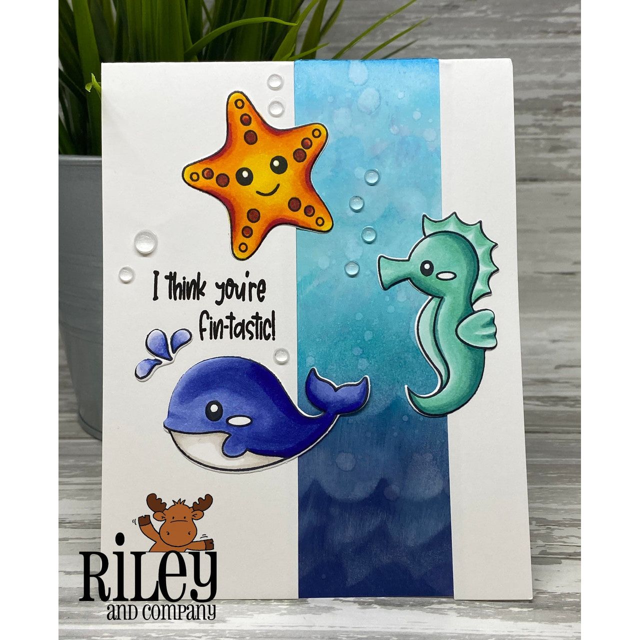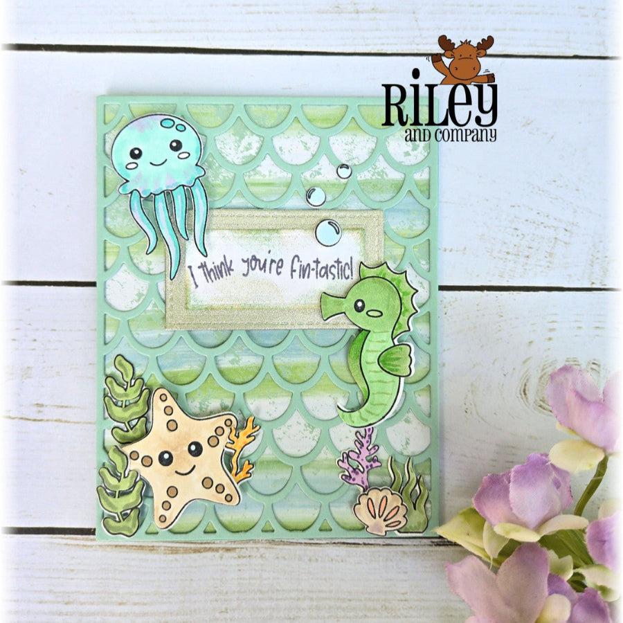 Riley and Company Ocean Cuties Dies coordinate with the Ocean Cuties Clear Stamps AM100, sold separately. This set includes 11 outline dies designed to cut out the stamped ocean-themed images with precision. Compatible with most leading die cutting machines.