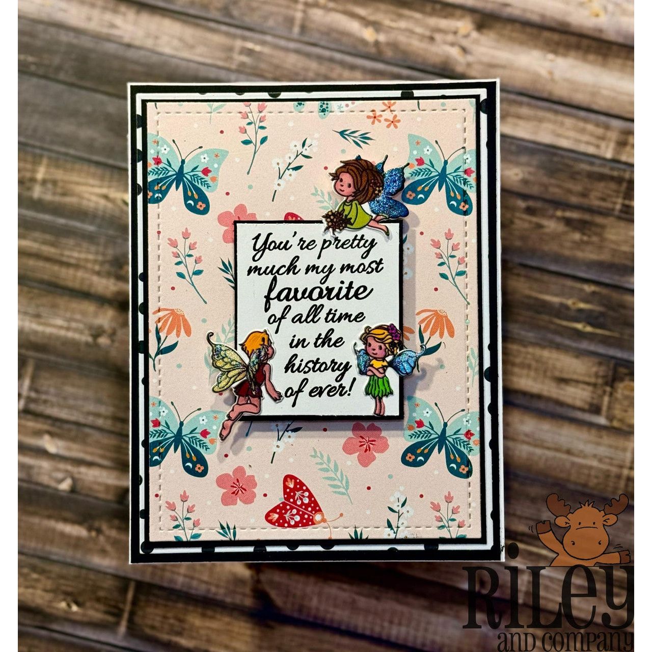 Riley and Company Tiny Fairies Clear Stamps is a 4x6 inch set brimming with whimsical charm. Featuring seven adorable little fairies in flowing outfits, this enchanting collection captures them mid-flight, carrying flowers, and engaging in other magical moments. Alongside the sweet illustrations are six heartfelt sentiments, perfect for adding a touch of wonder to your cards, scrapbook pages, and other creative projects.