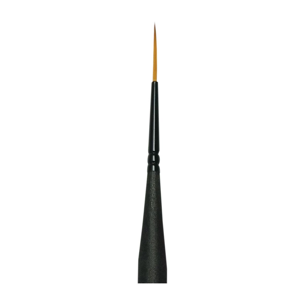 Royal Langnickel Mini Majestic Script Liner Brushes are specially crafted for miniature-scale work, perfect for achieving precise details in painting. Constructed with a superior blend of synthetic taklon filaments, these brushes excel with all paint mediums. Featuring double-crimped brass ferrules and thick, ultra-short soft grip handles, they offer both durability and comfort during use. Script brushes, characterized by their narrow, pointed shape and long fibers, hold more paint than regular liners, making them ideal for long scrolls, straight lines, or stroke work. With a brush size of 20/0, these brushes provide the control needed for intricate painting tasks.