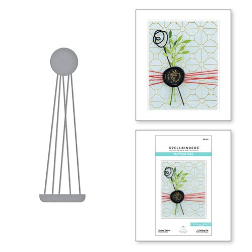 The Sealed Twine Etched Dies is part of the Sealed by Spellbinders Collection. This unique die cuts strands of twine with a solid circle shape on one end. Die-cut two to cover both ends of a card panel from a slimline to an A-2 size just trim the excess. The circle is perfect for layering a wax seal or circle shaped sentiment.