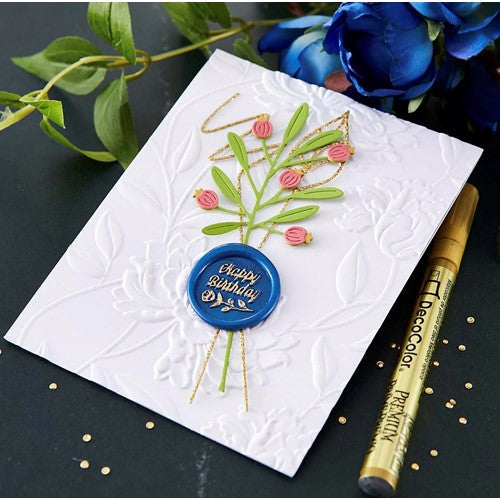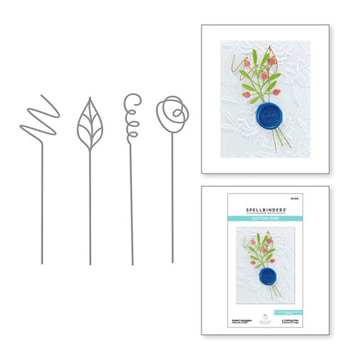 The Sealed Squiggles Etched Dies are from the Sealed by Spellbinders Collection. This set of four thin metal cutting dies are perfect for any floral or bouquet accent. They add just the right touch! Most are approximately five-inches tall so trim them to create the right height. There are four designs to choose from!