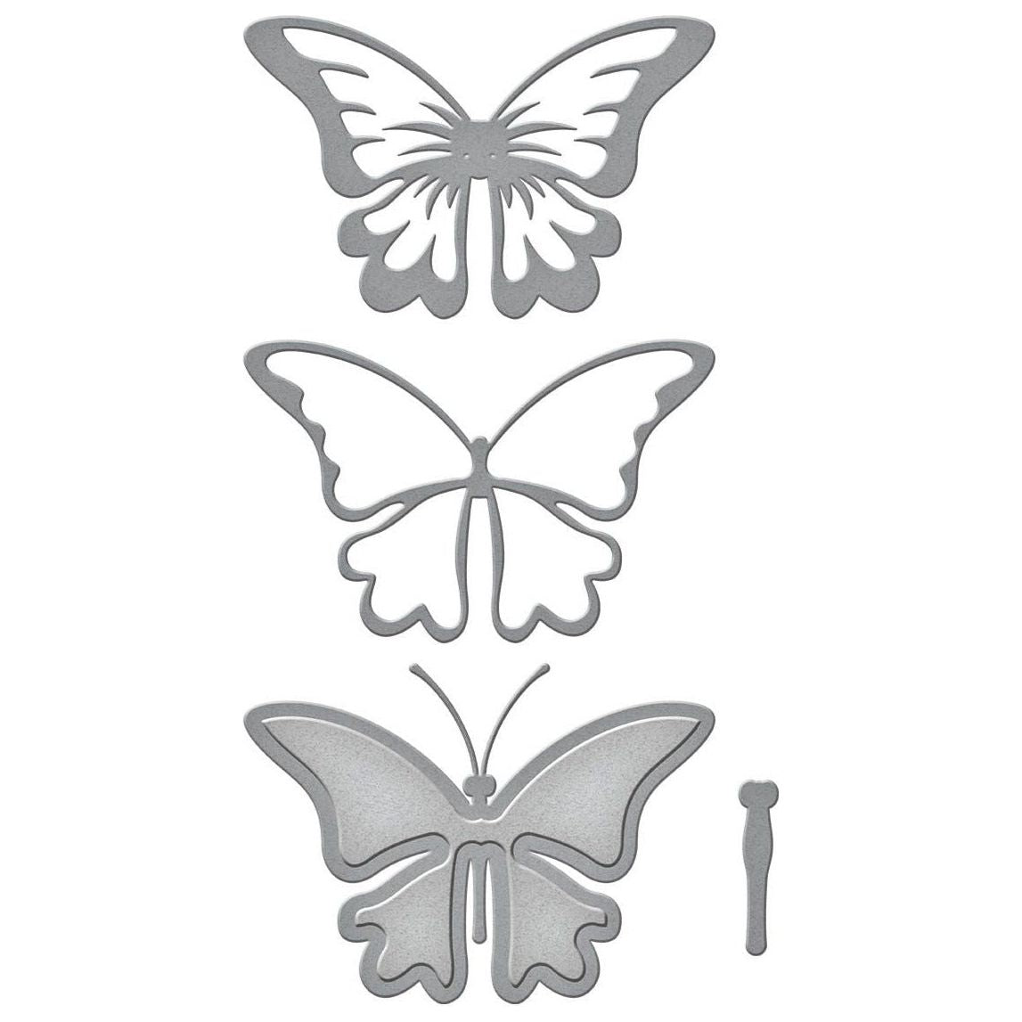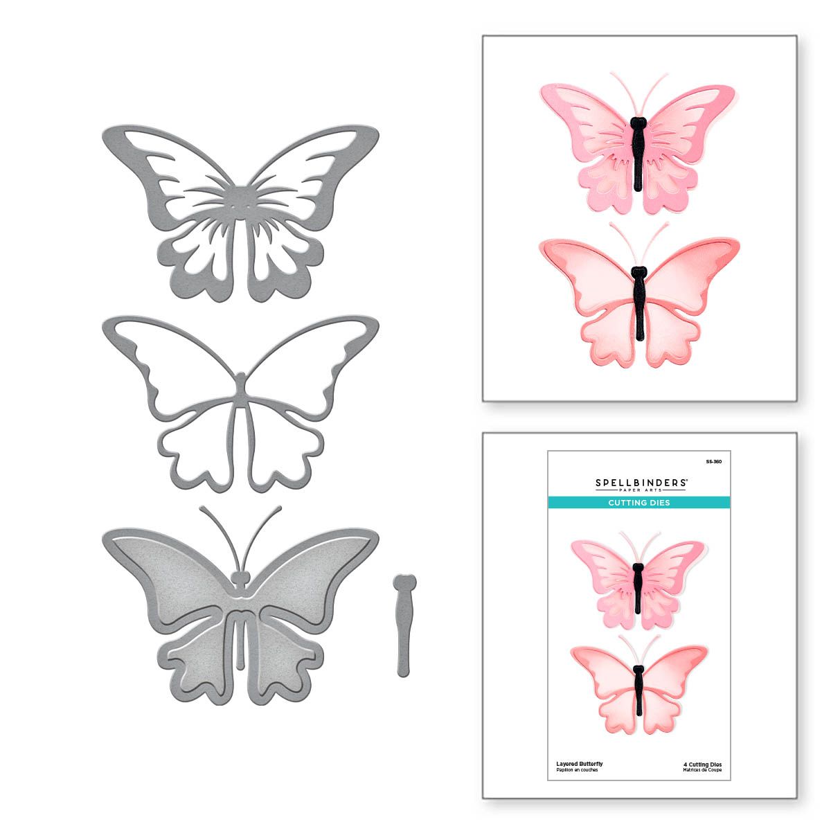 Shapeabilities Layered Butterfly Etched Dies is a set of four dies with three different layering pieces to create a sweet but intricate butterfly design. Each brings a unique design with each layer. Also includes a simple butterfly body. The Spellbinders Exclusives Collection will be only available at select retailers. Spellbinders Shapeabilities cut, emboss and stencil with a single die template.