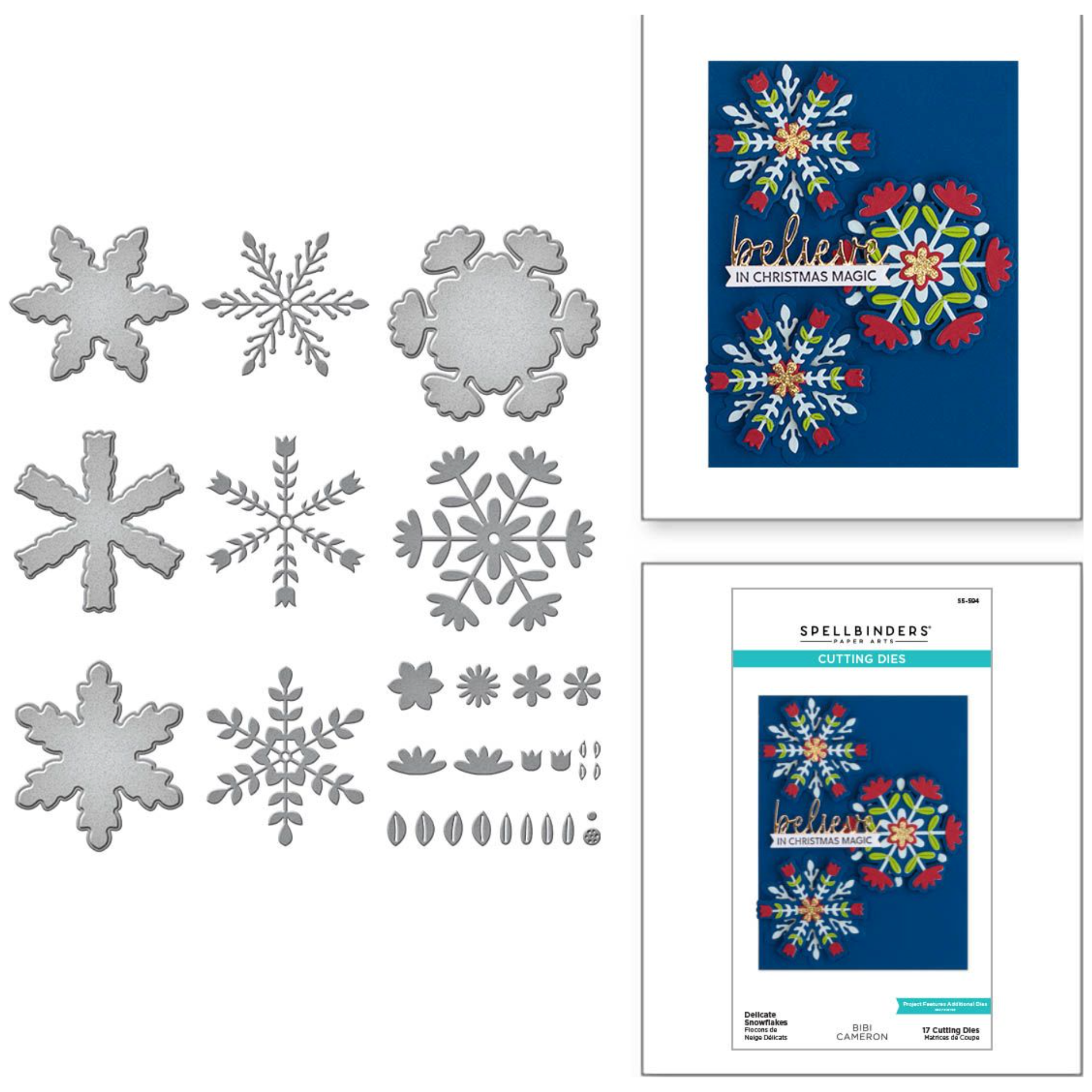Embrace the artistry of winter with the Spellbinders Delicate Snowflakes Etched Dies and other elements from Bibi's Snowflakes Collection. Let Bibi Cameron's remarkable designs and attention to detail inspire your creative endeavors, allowing you to bring the magic of snowflakes to life in your crafting projects.