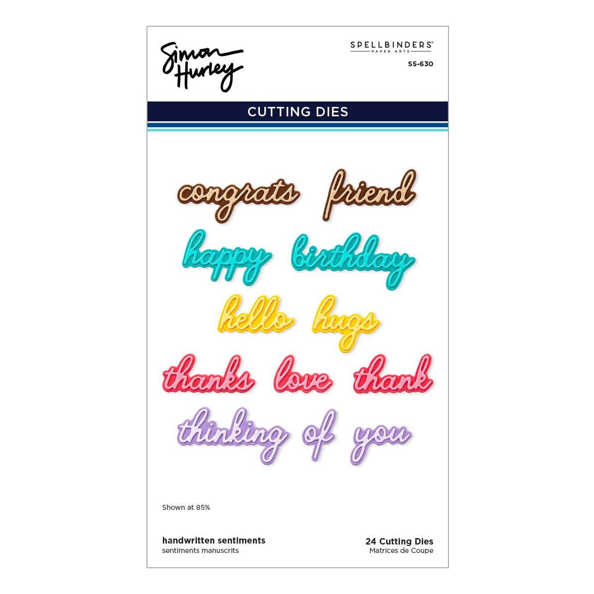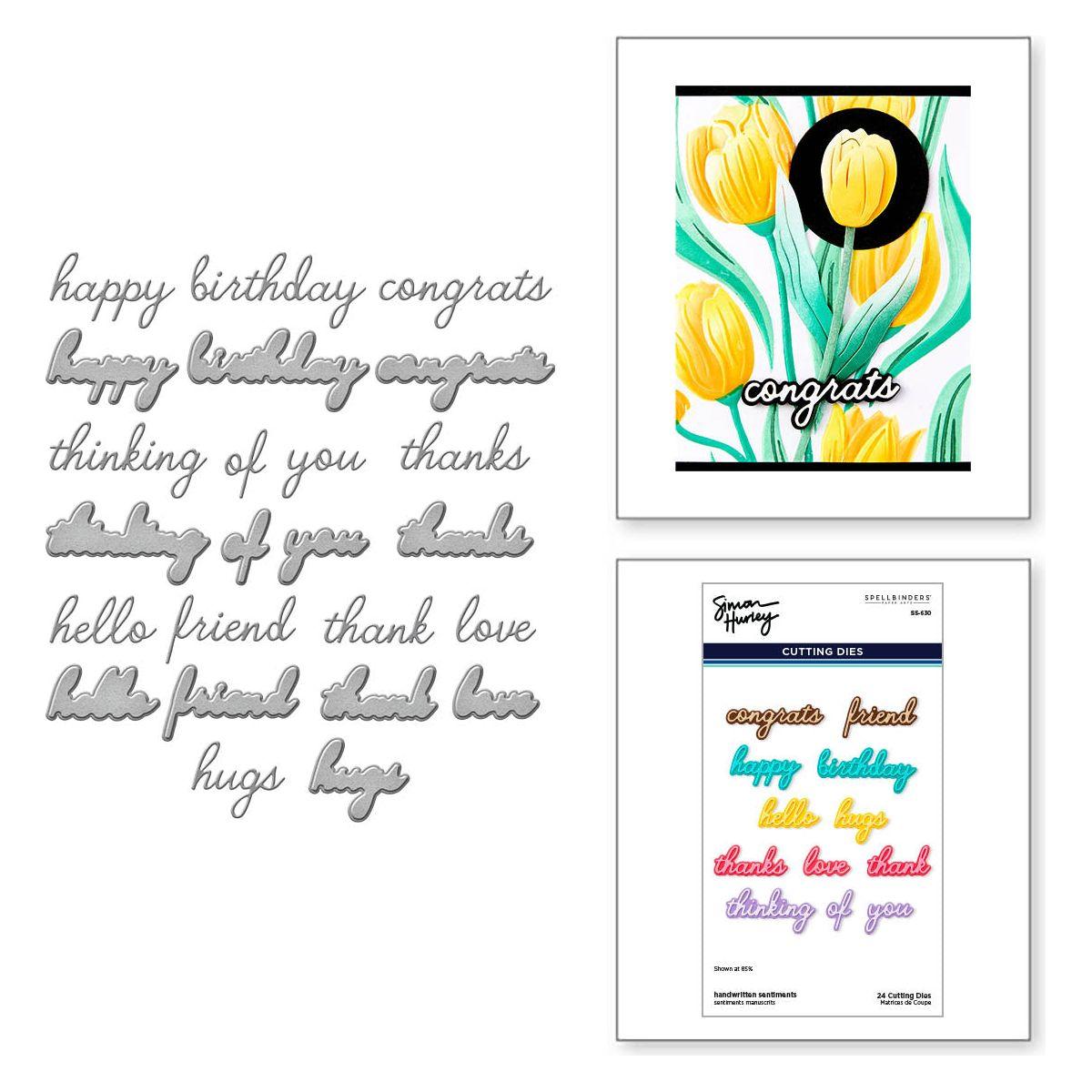 The Handwritten Sentiments Etched Dies from the Tulip Garden Collection by Simon Hurley offer a versatile set of 24 thin metal cutting dies to create your own sentiments. Each word comes with its own outline die for a bold appearance. Whether it's a birthday, congratulations, or expressing gratitude, this set has you covered with words like hello, thanks, thinking, you, friend, hugs, and more!