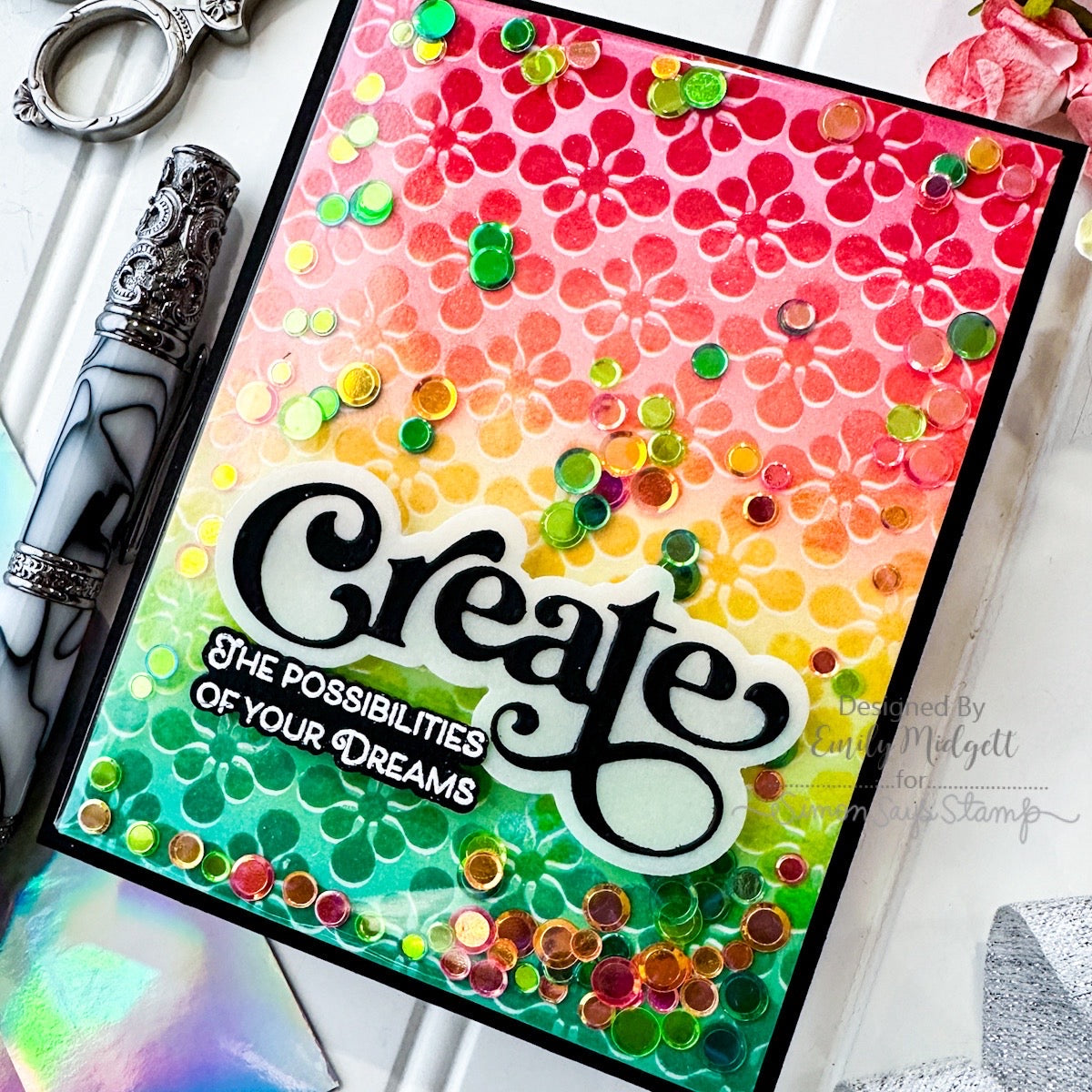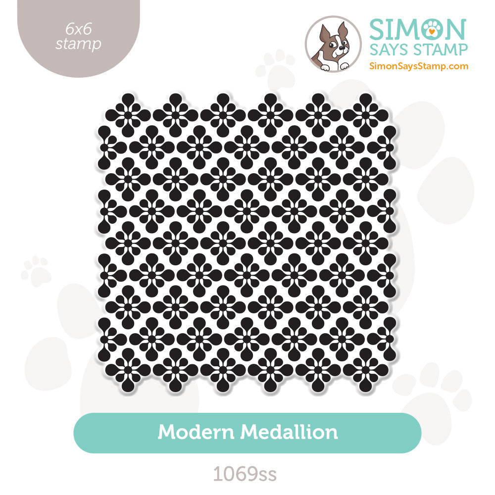 Elevate your crafting projects with the Simon Says Stamp Modern Medallion stamp! This versatile stamp effortlessly creates captivating backgrounds adorned with graphic diamond shapes formed by bulbous floral motifs.