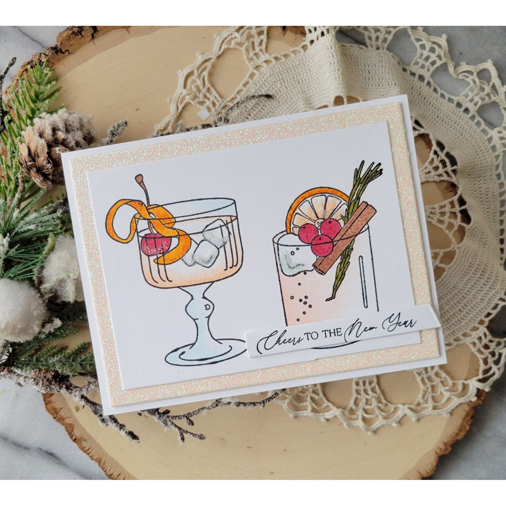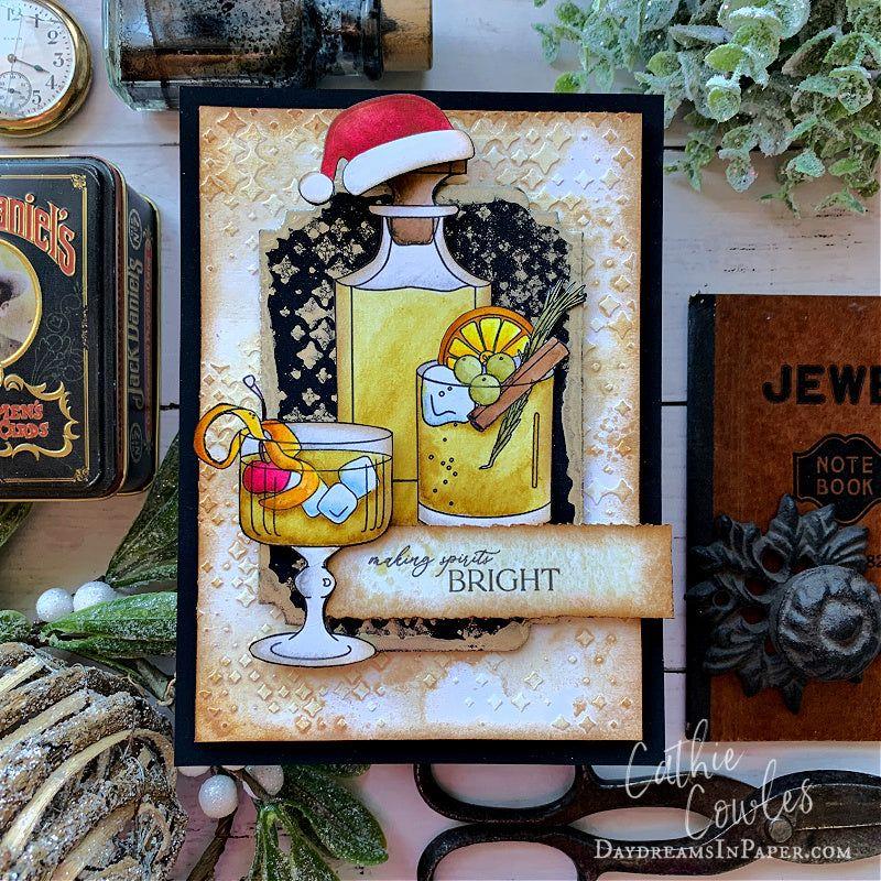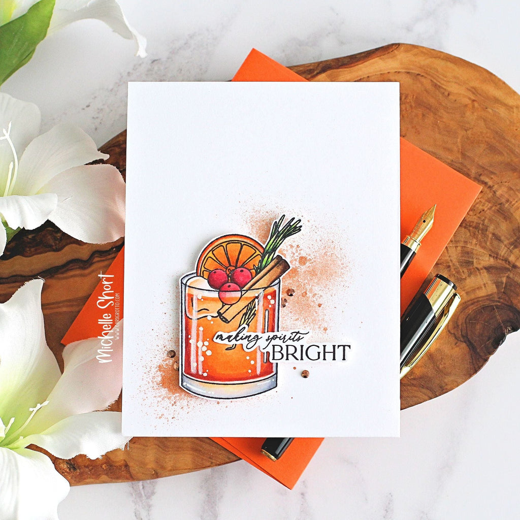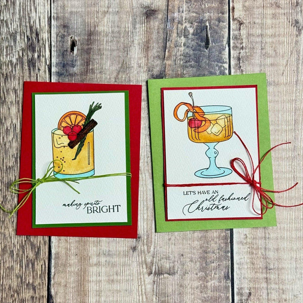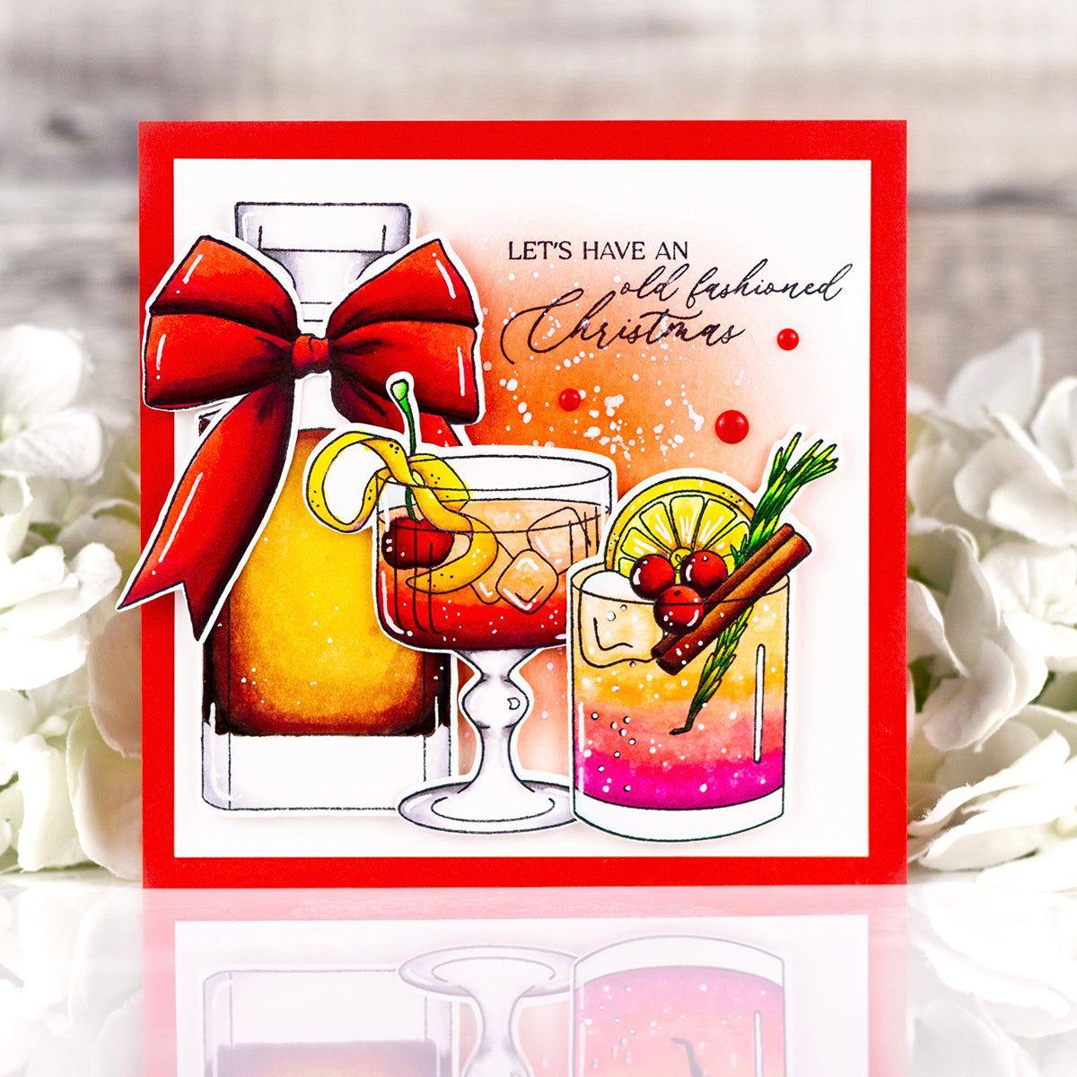 The Simon Says Stamp Old Fashioned Christmas stamp set brings a touch of classic elegance and festive spirit to your holiday crafting. Featuring two beautifully illustrated cocktails—one in a coupe glass and one in a rocks glass—along with a detailed decanter and a festive bow, this set is perfect for creating celebratory cards, gift tags, and party invitations.
