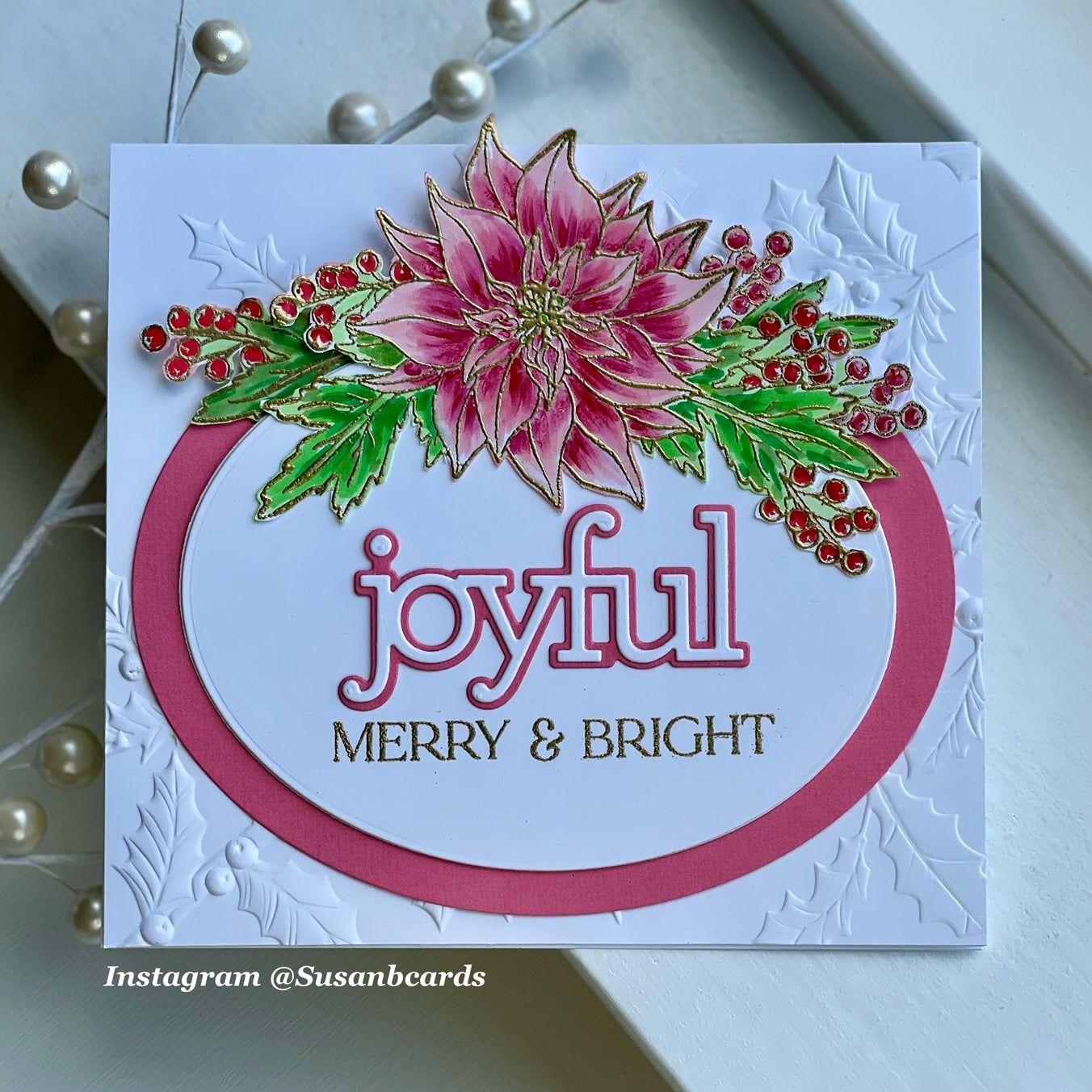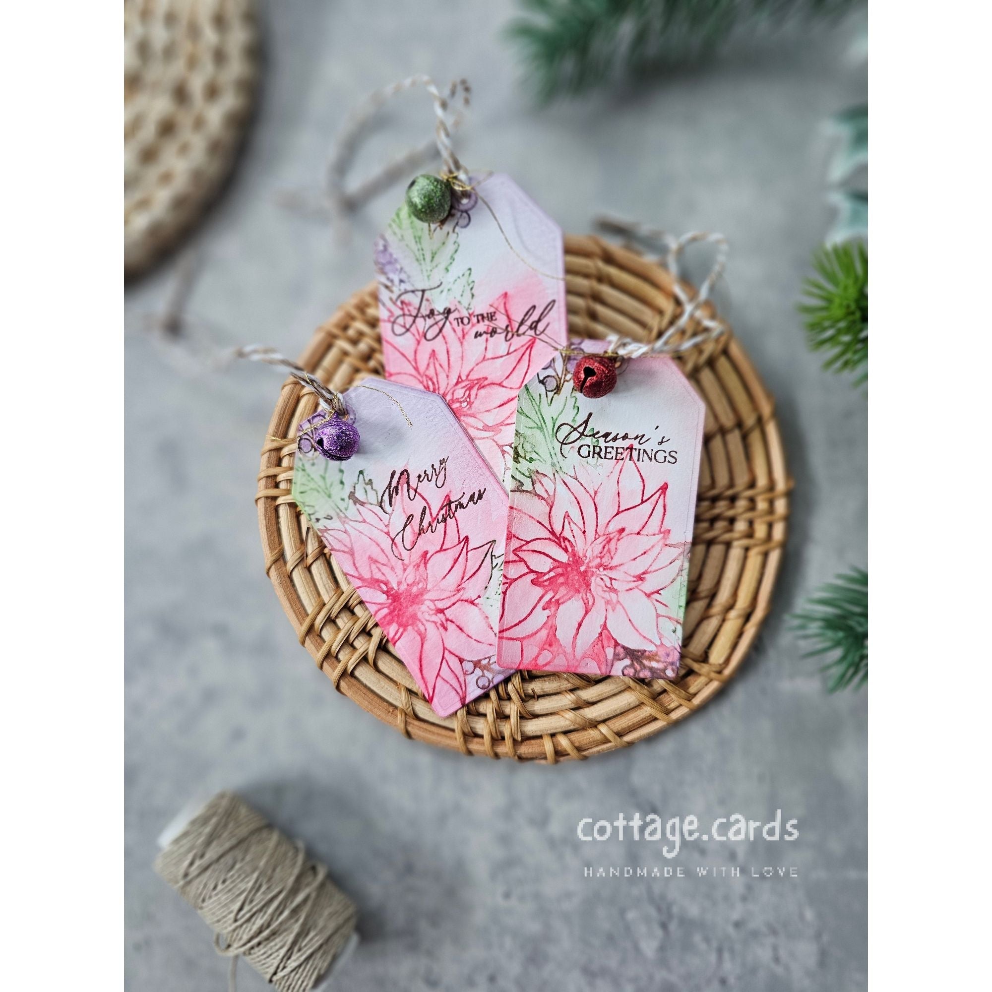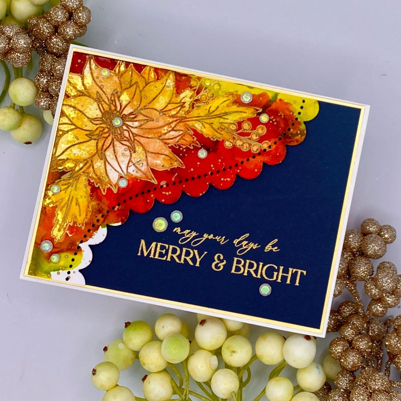 The Simon Says Stamp Poinsettia Swag stamp set offers a beautiful, festive focal point for your holiday crafting projects. The main image features an elegant poinsettia surrounded by delicate greenery and berries, perfect for adding a touch of seasonal cheer to cards, gift tags, and more.