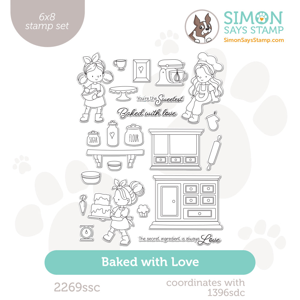 Whip up something sweet with the Simon Says Stamp Baked with Love stamp set. This charming collection features three adorable girls—one sporting a chef’s hat, one mixing ingredients in a bowl, and one proudly carrying a cake—ready to bring personality and warmth to your projects.