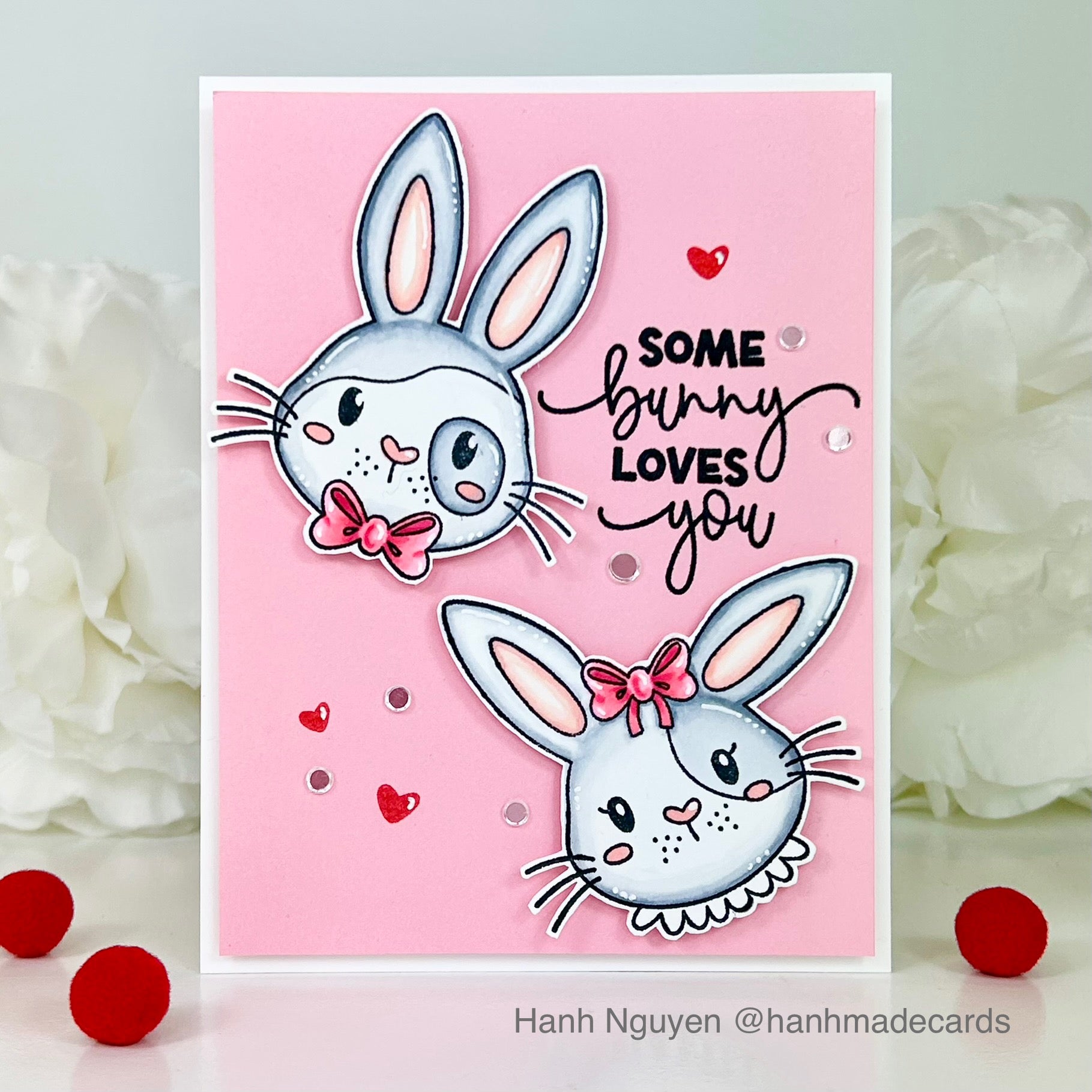The Simon Says Stamp Ear-Resistibly Cute stamp set is brimming with adorable bunny charm! This delightful collection features a variety of bunny heads, each adorned with sweet details like hats, collars, ribbons, bow ties, and flowers. Additional images include hearts, a flower, and a carrot.