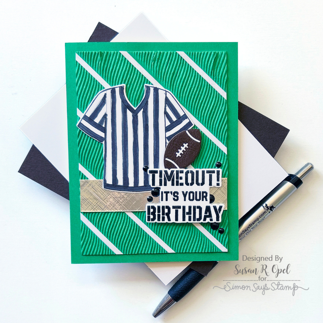 Get ready for game day with the Simon Says Stamp Football Season stamp set! This sporty collection features all the essentials for crafting the perfect football-themed project, including images of a helmet, foam finger, football, star, and a customizable jersey.