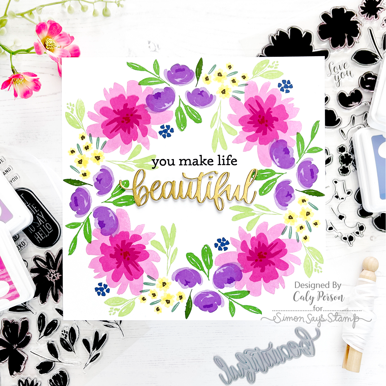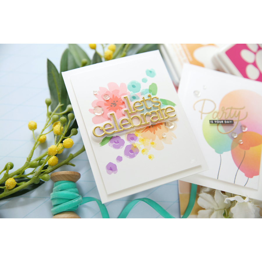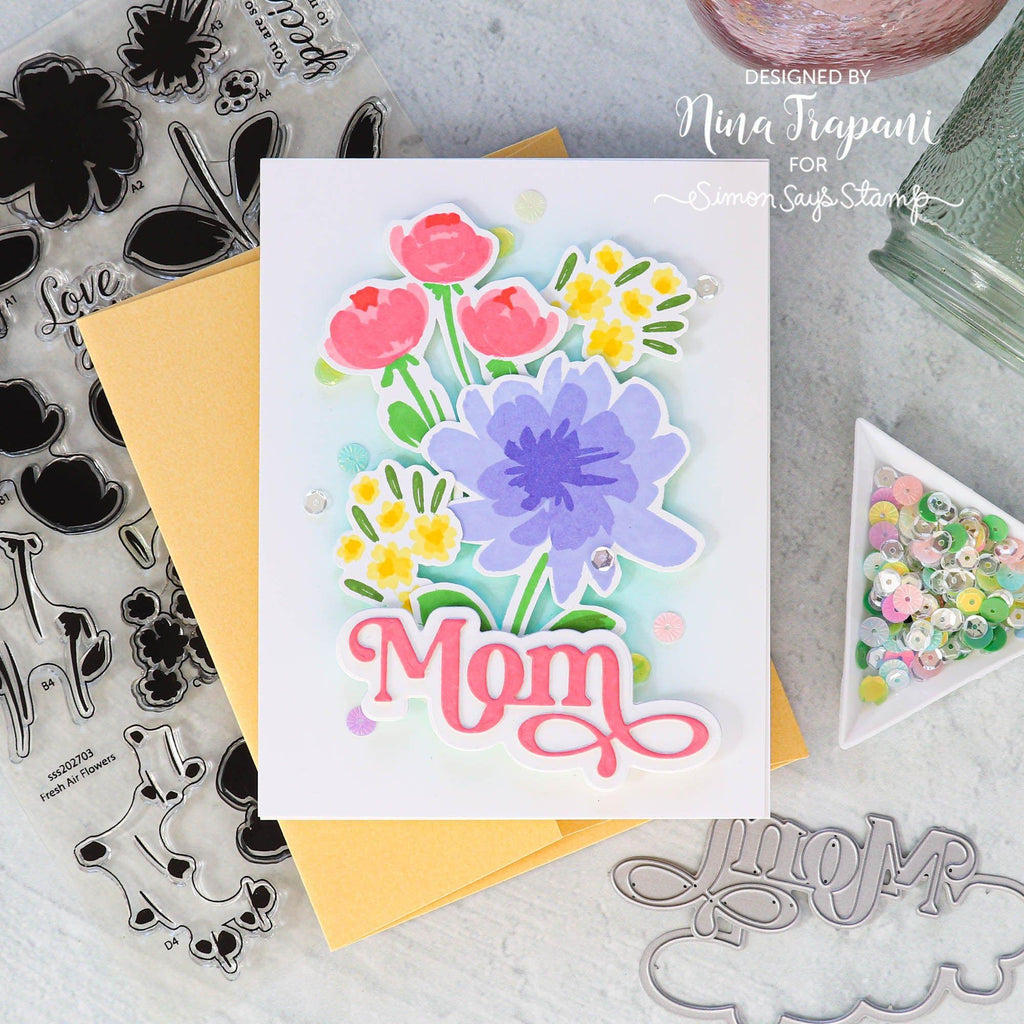 For those who would like the option to cut out the images, there is a coordinating die set (sssd112837c) available for purchase separately which includes a total of 8 metal dies that perfectly cut out each of the completed layered flowers and flower clusters as well as the four sentiments of the Fresh Air Flowers stamp set.