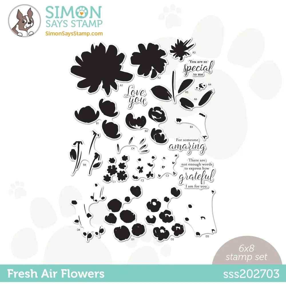Experience the simplicity and elegance of the Simon Says Stamp Fresh Air Flowers stamp set! This layering stamp collection features a variety of solid stamps (including larger blooms and smaller clusters), designed to be used in layers, allowing you to create beautiful, multi-colored floral designs with ease. Combine the various blooms and foliage elements to craft your own unique garden-inspired creations for card making, scrapbooking, and other papercraft projects.