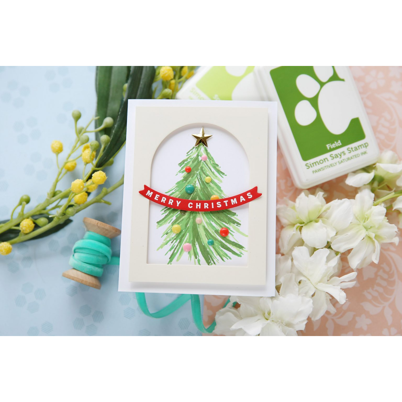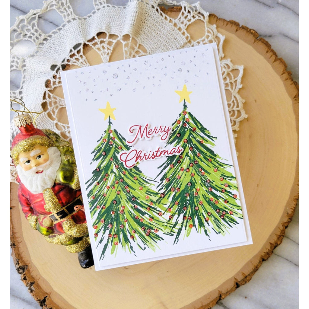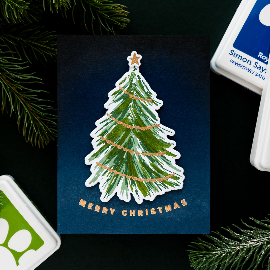 The Simon Says Stamp Fresh Air Holiday Tree stamp set is your ticket to crafting a festive masterpiece. This layering stamp set allows you to effortlessly create an artistic Christmas tree adorned with lights, stars, and garland.