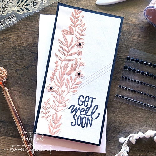 Simon Says Stamp clear stamps are high quality photopolymer and made in the USA. This stamp set measures approximately 6 x 8 inches and coordinates with the Garden Greetings die set (sssd112213c).