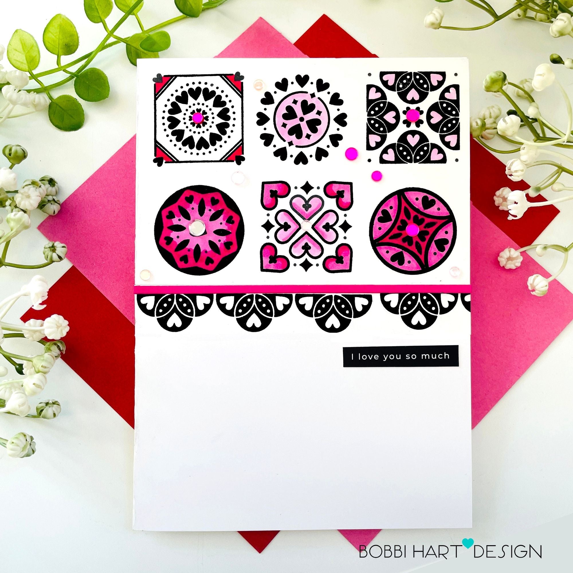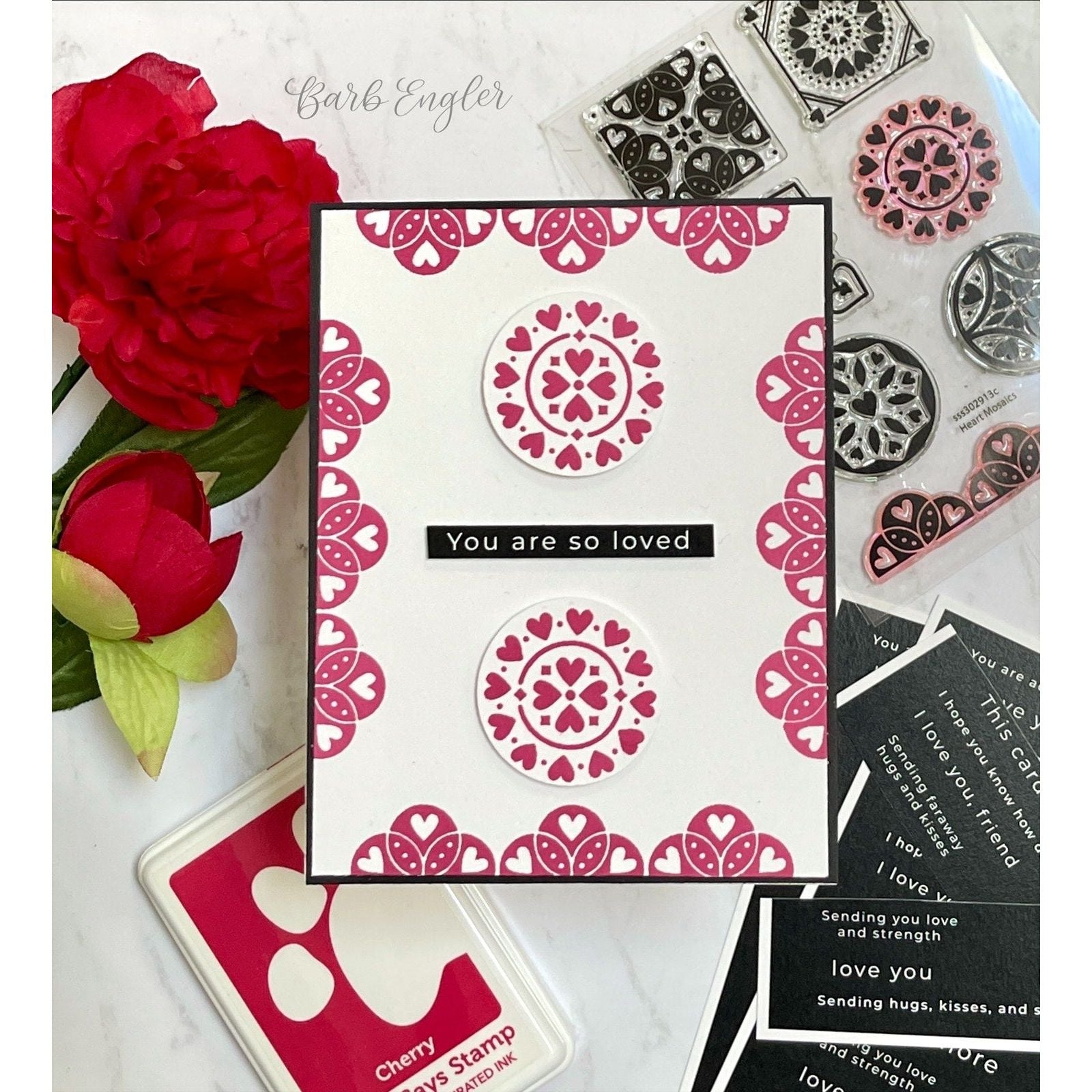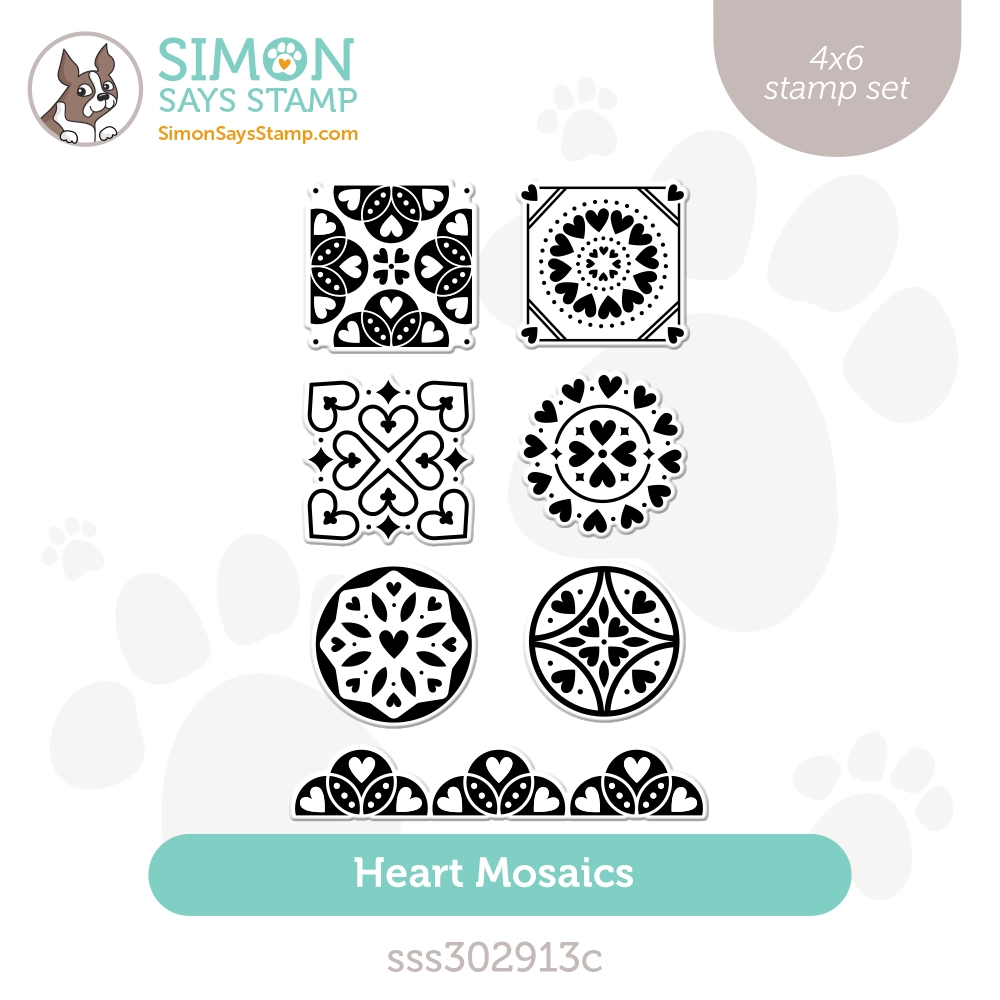 Elevate your crafting with the Simon Says Stamp Heart Mosaics stamp set. This versatile set stamps squares, circles, and a border in a mosaic tile style adorned with charming heart motifs.