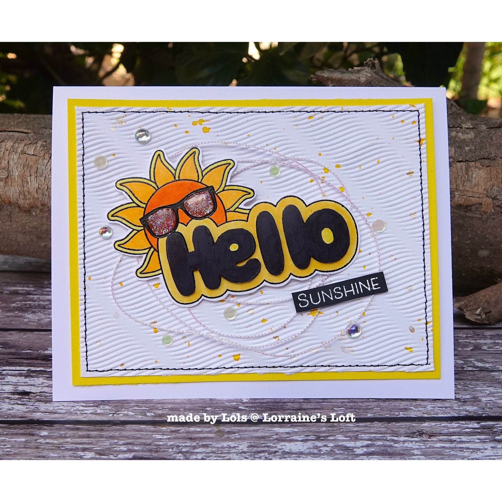 Introducing the Simon Says Stamp Hello stamp set! This delightful mini set features the word "Hello" in charming puffy letters, accompanied by a cheerful sun sporting sunglasses in the background.