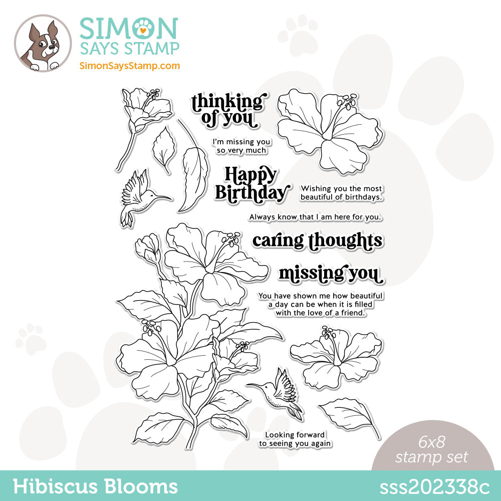 Simon Says Stamp clear stamps are high quality photopolymer and made in the USA. This stamp set measures approximately 6 x 8 inches and has a coordinating die set, Hibiscus Blooms (sssd112393c).