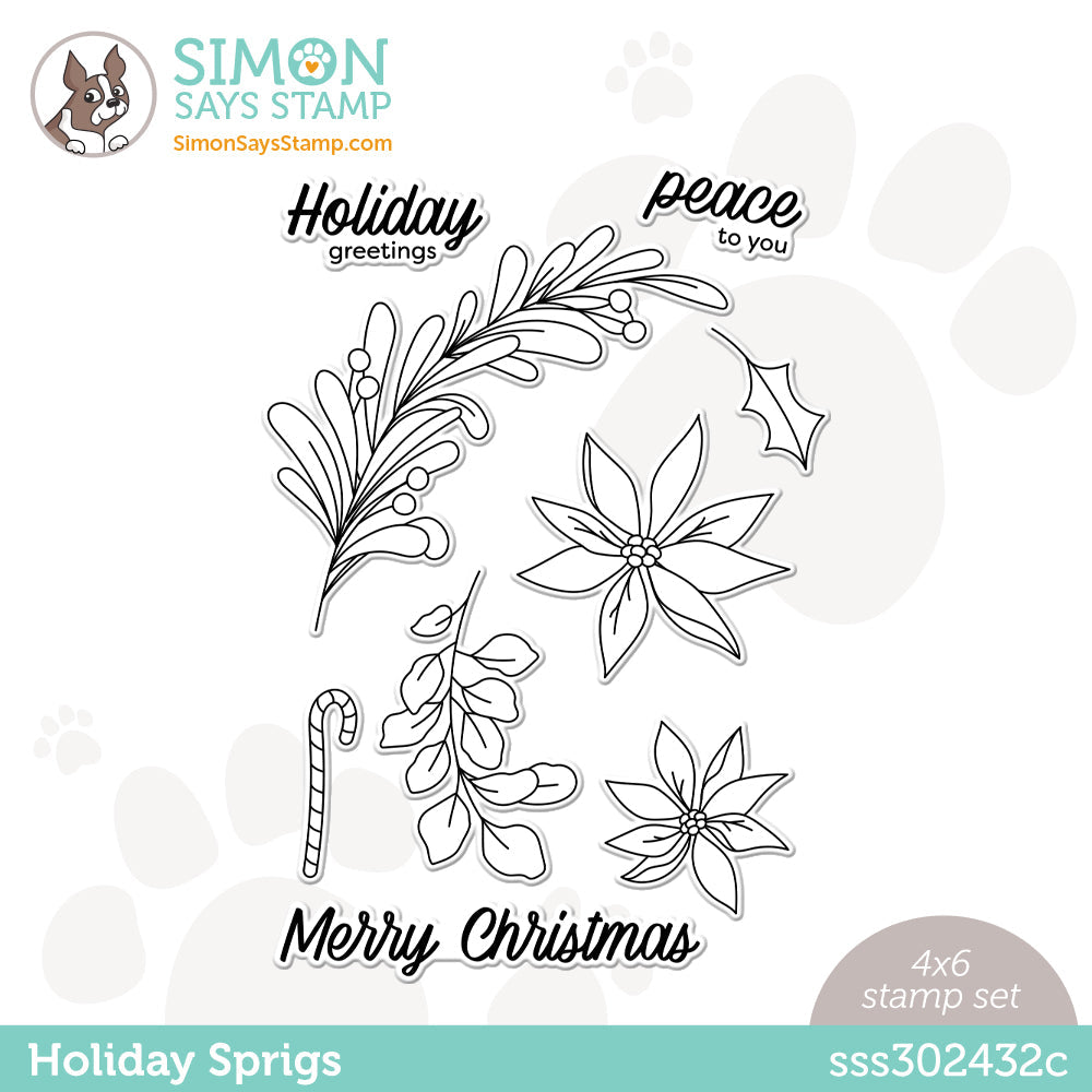 Simon Says Stamp clear stamps are high quality photopolymer and made in the USA. This stamp set measures approximately 4 x 6 inches and has a coordinating die set, Holiday Sprigs (sssd112469c).
