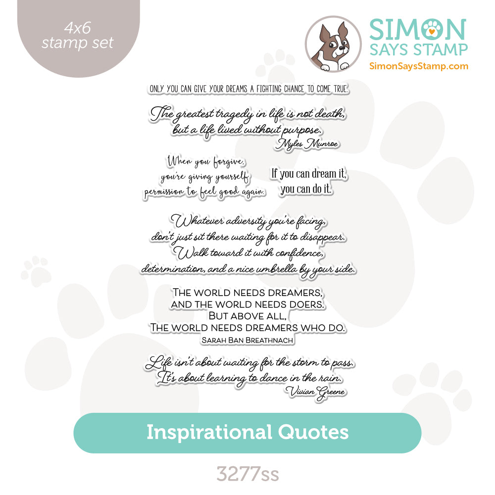 The Simon Says Stamp Inspirational Quotes stamp set features a collection of uplifting, encouraging sentiments designed to inspire and motivate. Perfect for adding meaningful messages to your creative projects, these phrases work beautifully in art journals, handmade cards, scrapbook pages, and mixed media designs. Sentiments include: