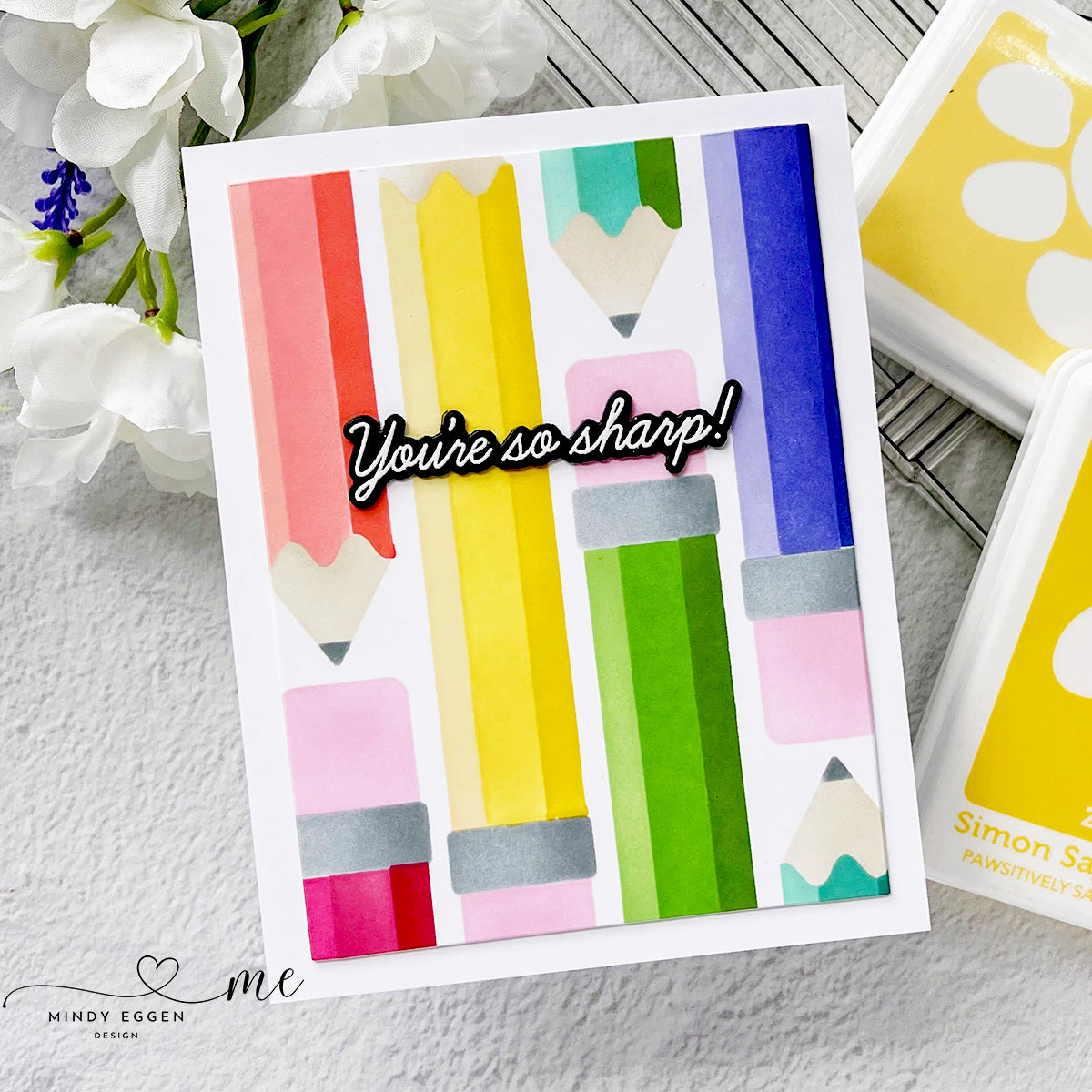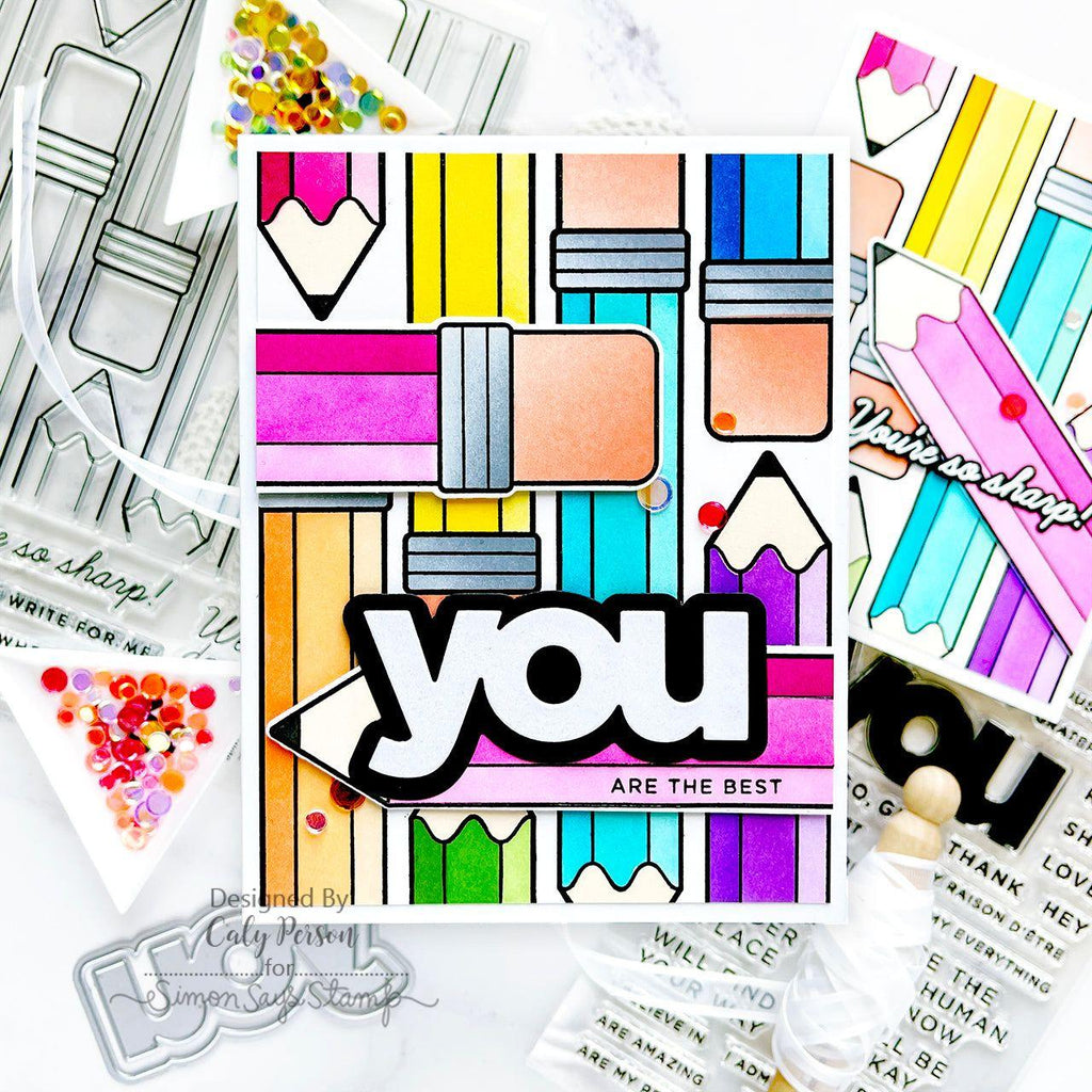 Unleash your creativity with the Simon Says Stamp Just Write stamp set! This set features a striking large pencil image and a repeating background pattern of alternating vertical pencils.