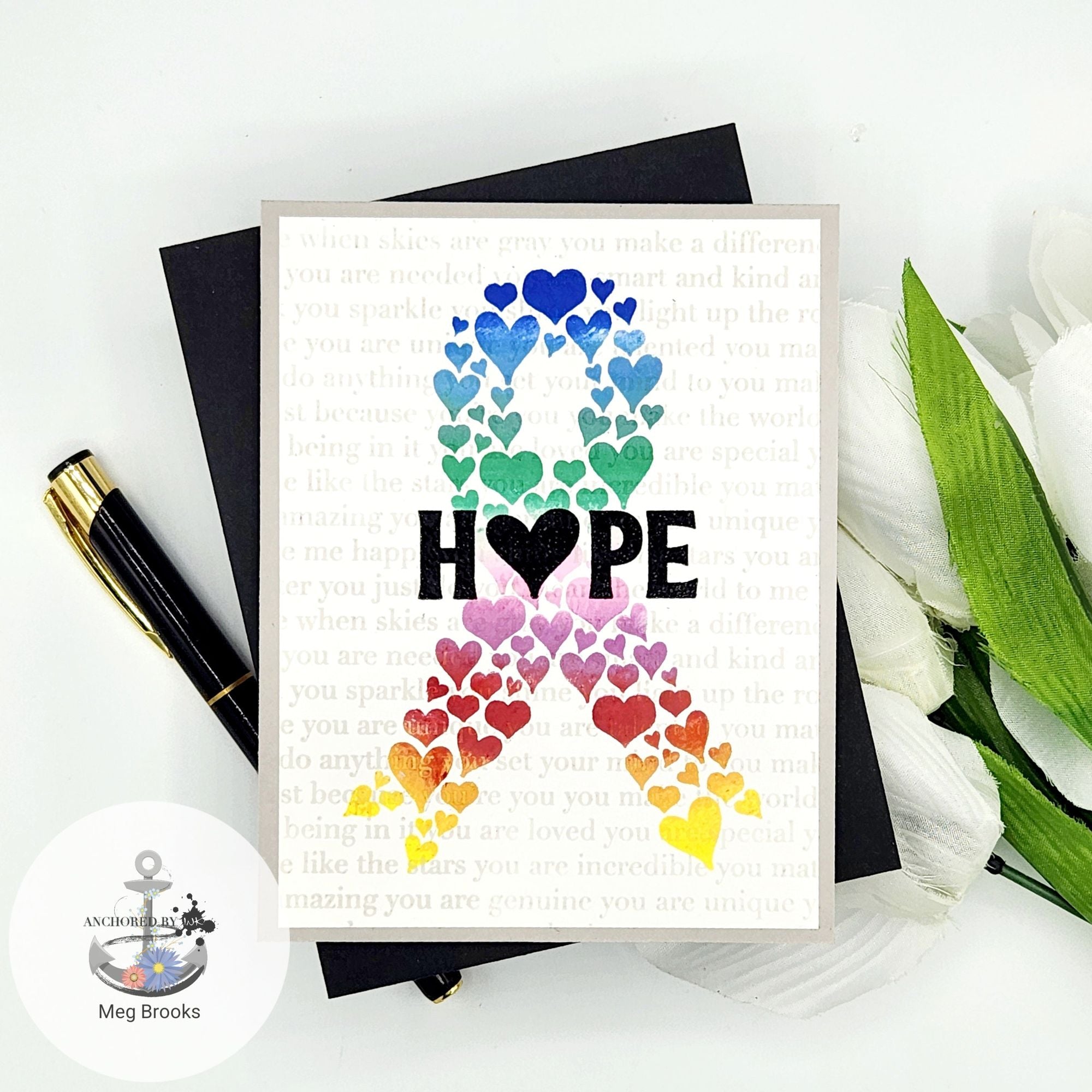 Additionally, you'll find variations of the words "Hope" and "Love," where the letter "o" is replaced with a heart, adding a touch of warmth to your projects. Share your love and support with the Love Ribbon stamp set.