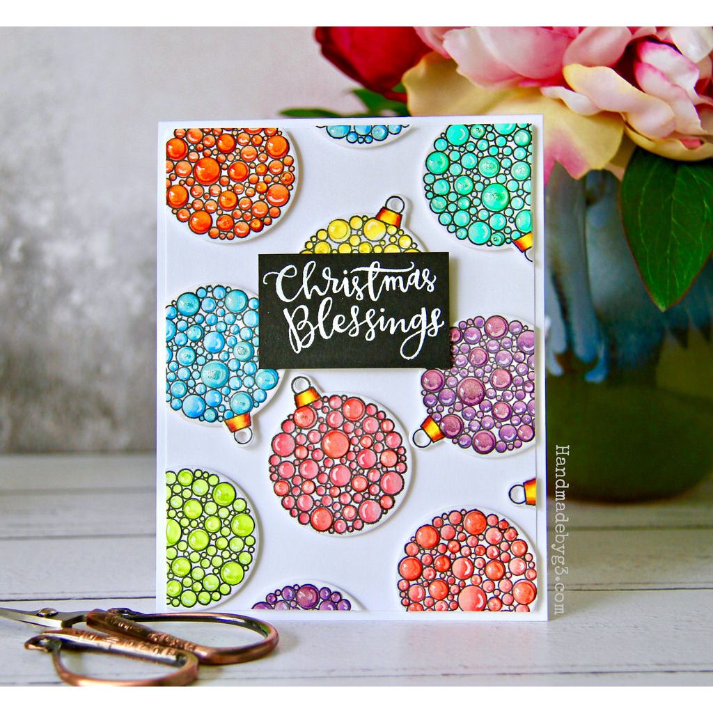 Simon Says Stamp clear stamps are high quality photopolymer and made in the USA. The stamp set measures 4 inches x 6 inches. This stamp coordinates beautifully with the Ornate Ornaments wafer die set sssd111865.