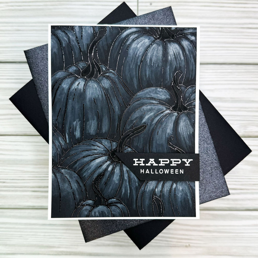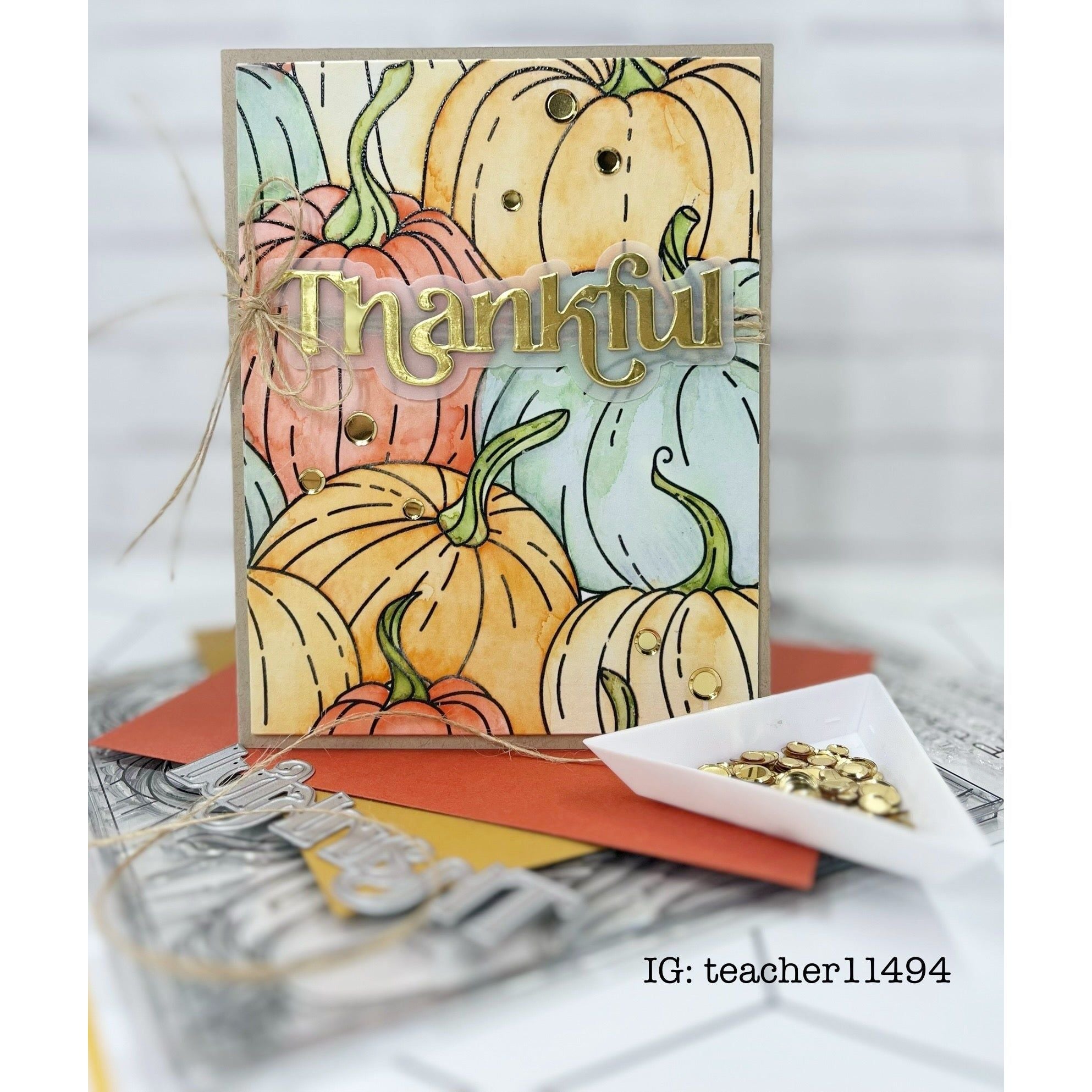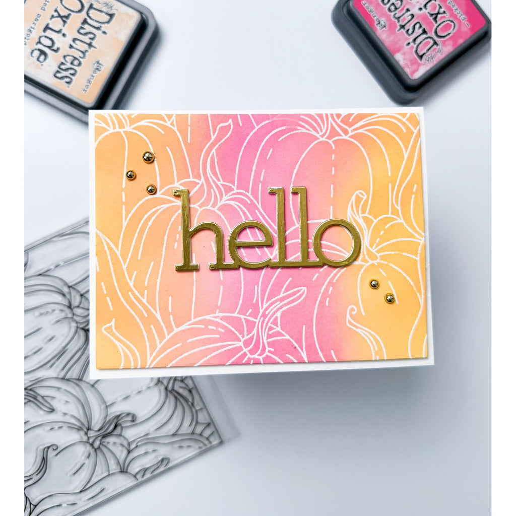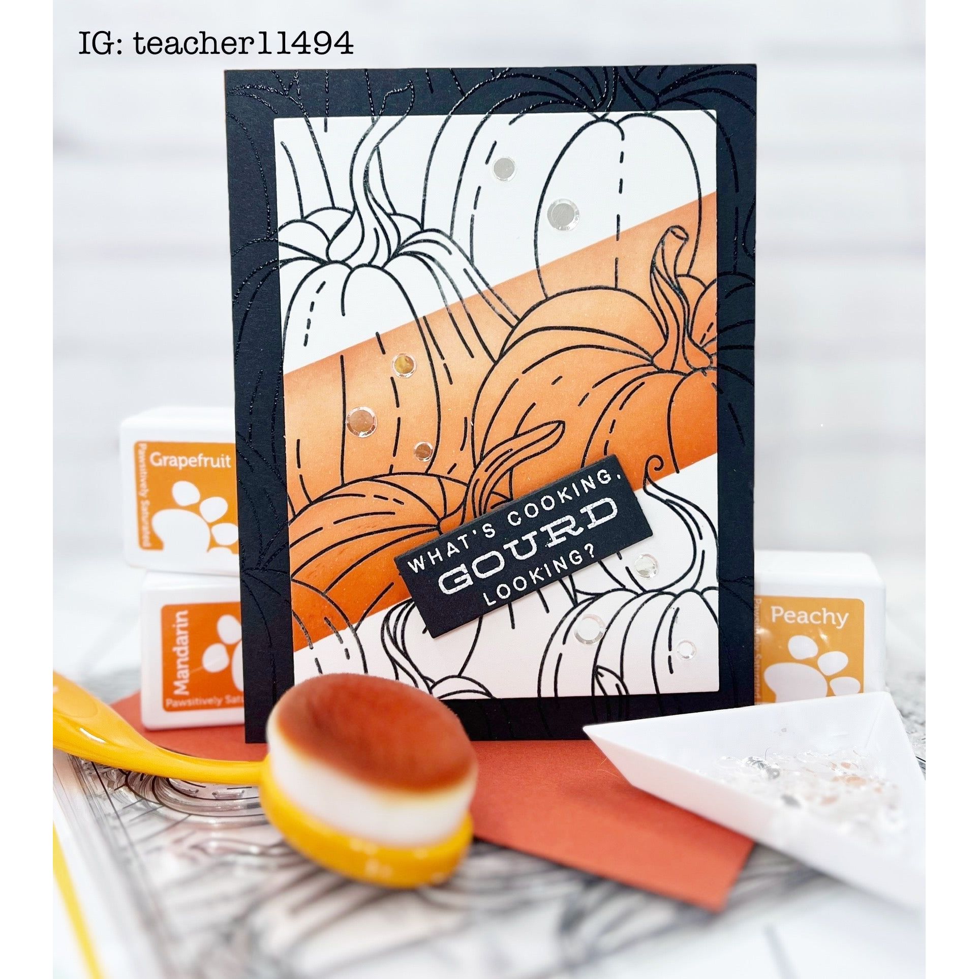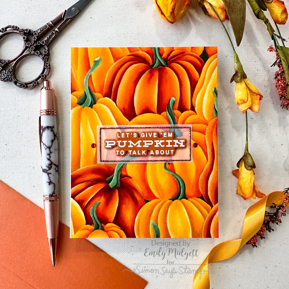 Celebrate the autumn season with the Simon Says Stamp Pumpkin to Talk About stamp set. This set features a large 6x6 inch square image of beautifully detailed pumpkins, perfect for creating stunning focal points on your cards, scrapbook pages, and other papercrafts.