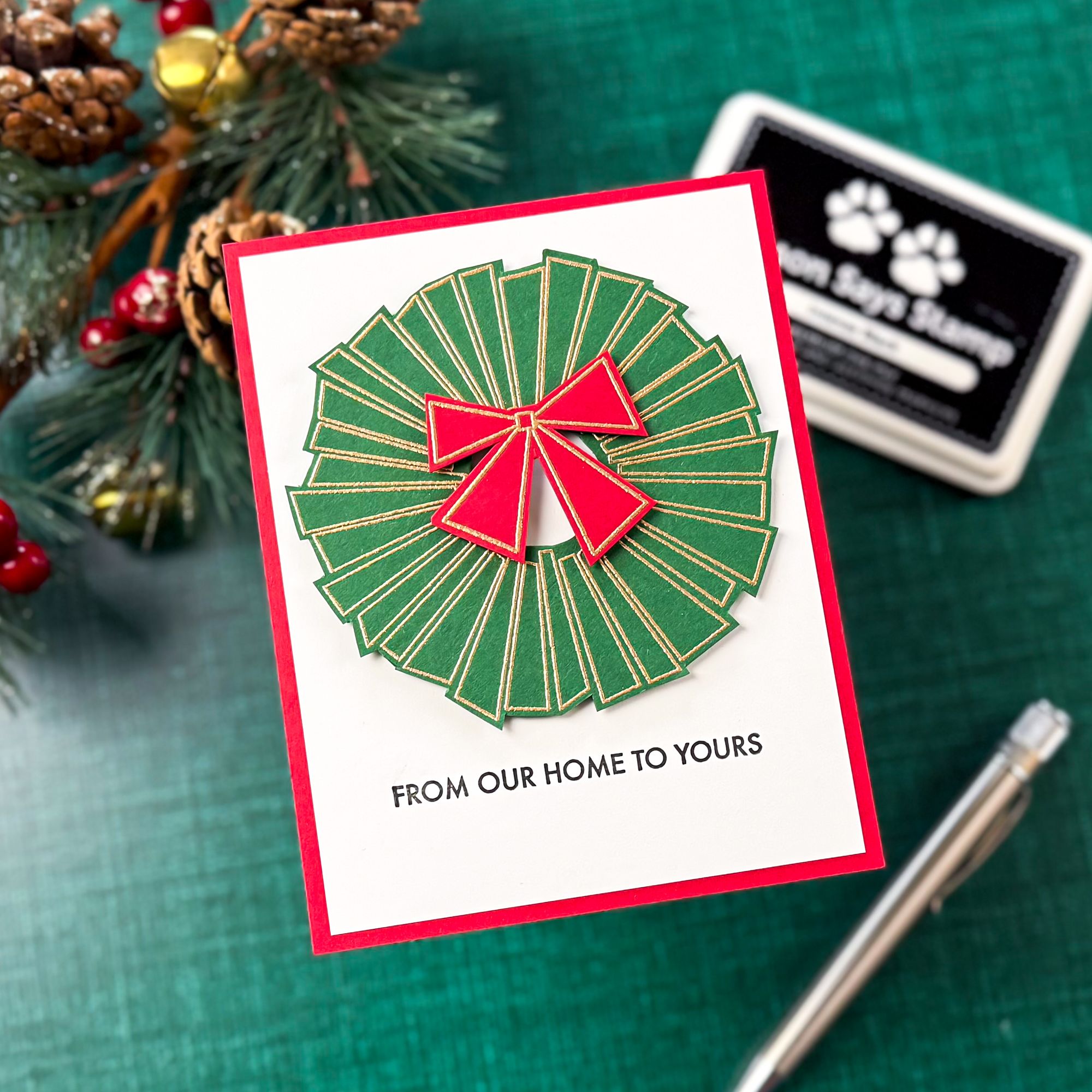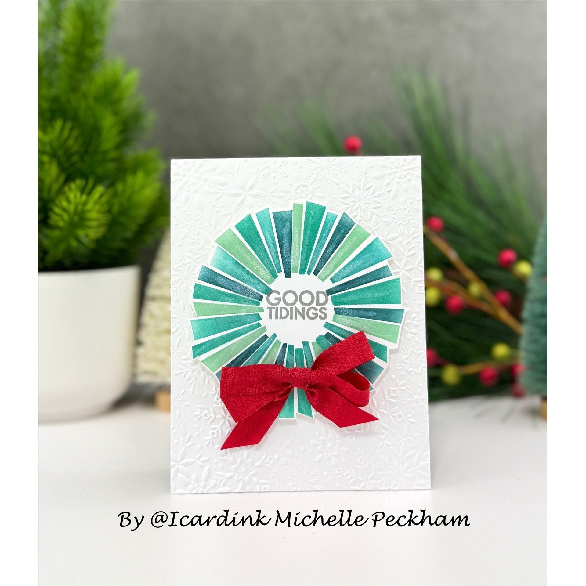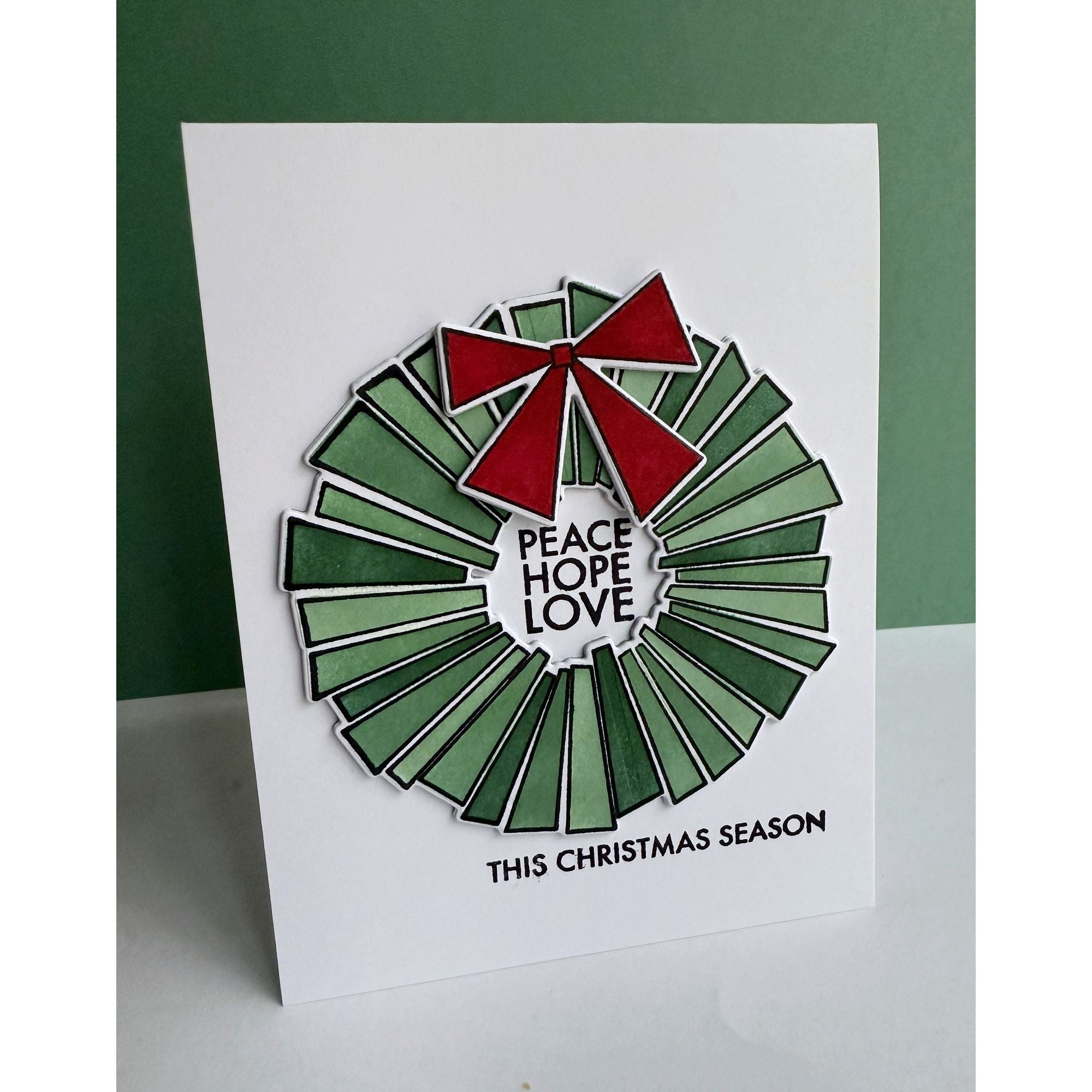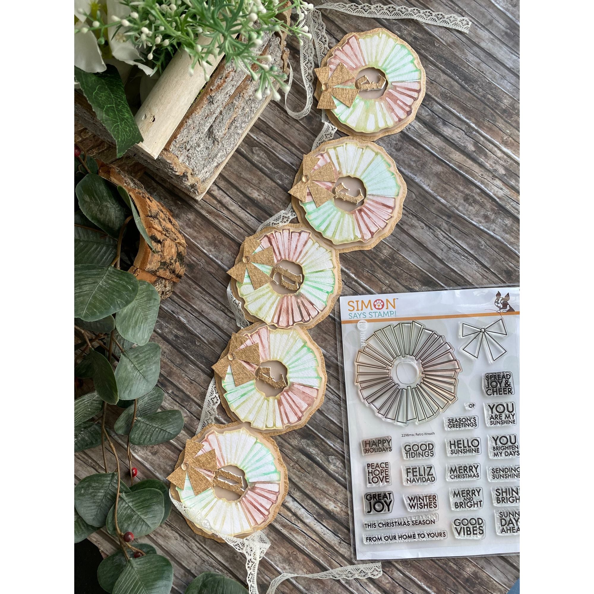Add bold, modern flair to your holiday projects with the Simon Says Stamp Retro Wreath stamp set. This stylish collection features a graphic, geometric wreath and coordinating bow with clean lines and funky, contemporary charm. The wreath image can also be imagined as a sun for even more versatility.